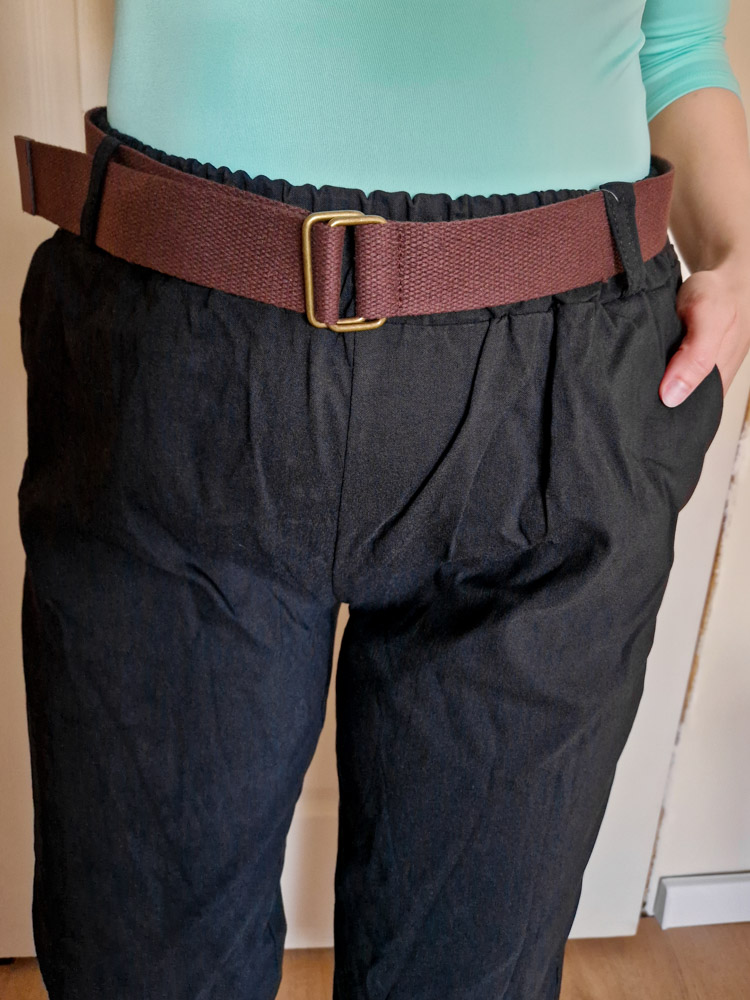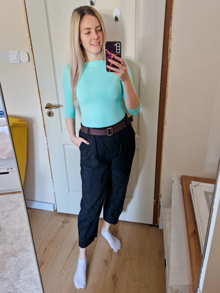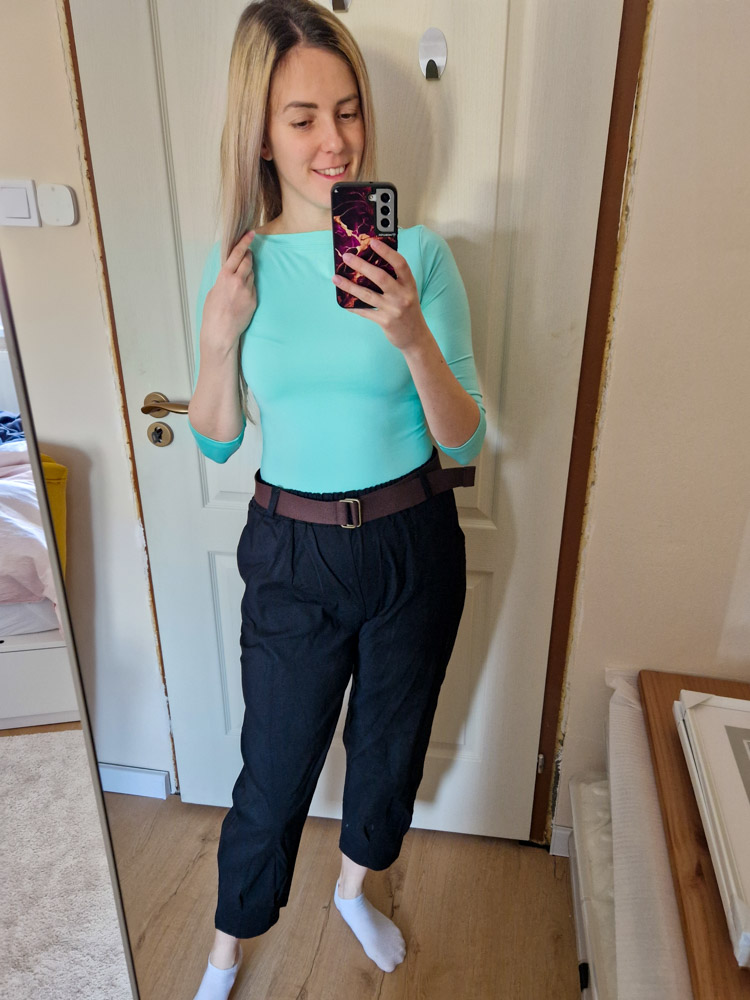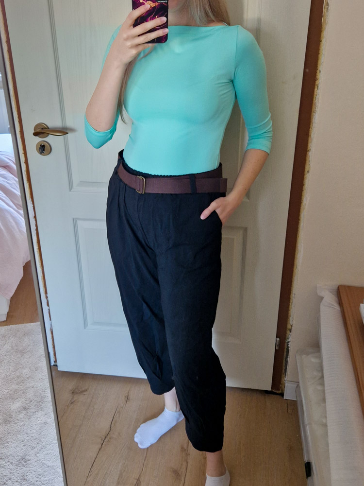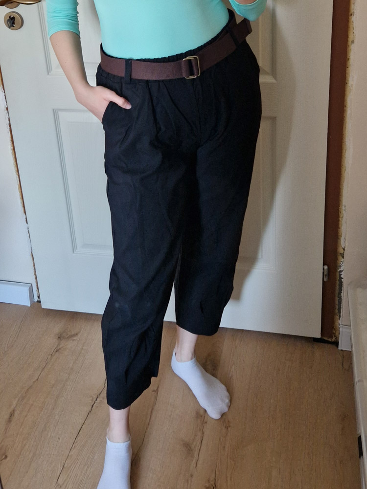 Fekete magas derekú női nadrág ajándék övvel - elegáns, kényelmes fazon XL méretig