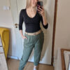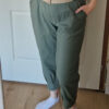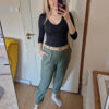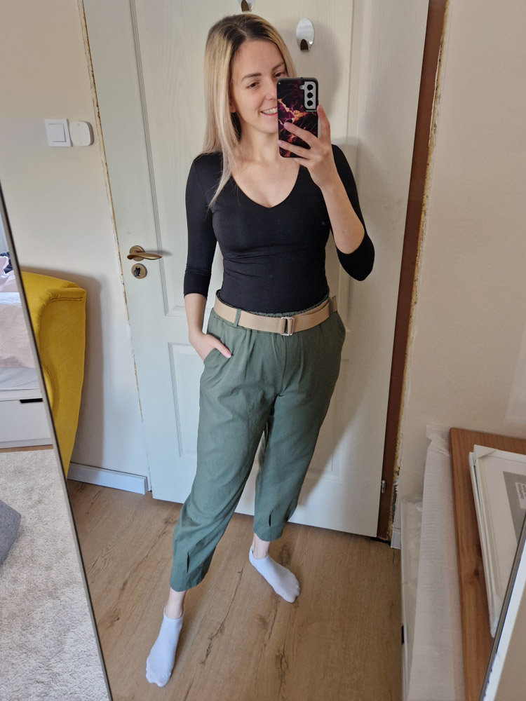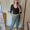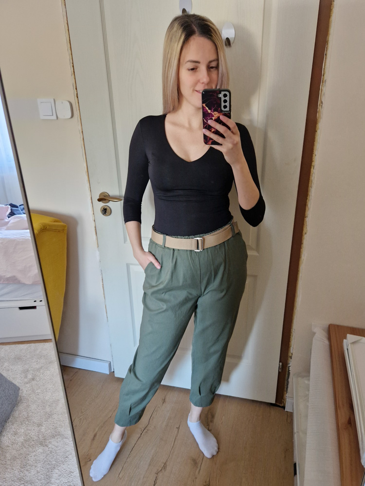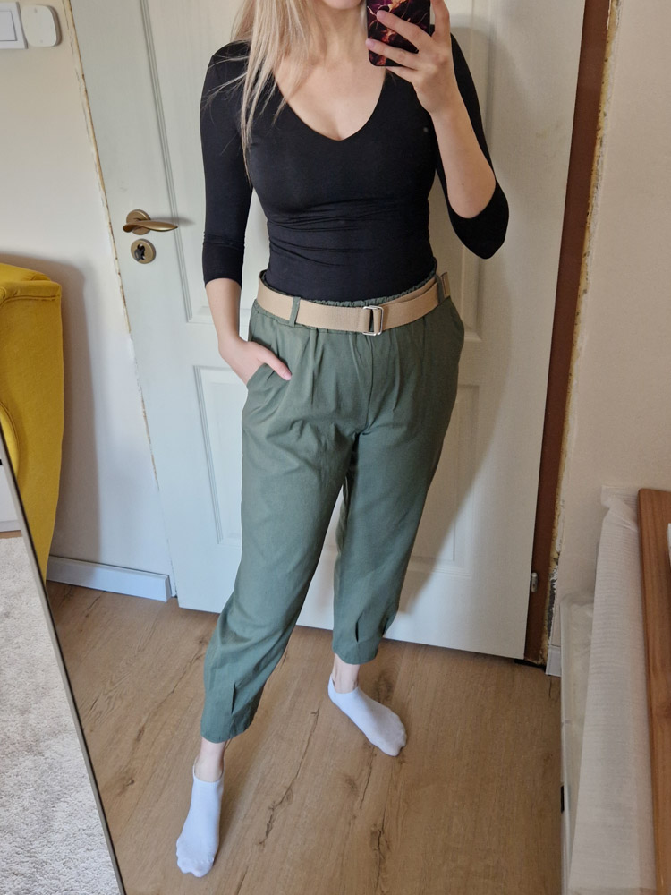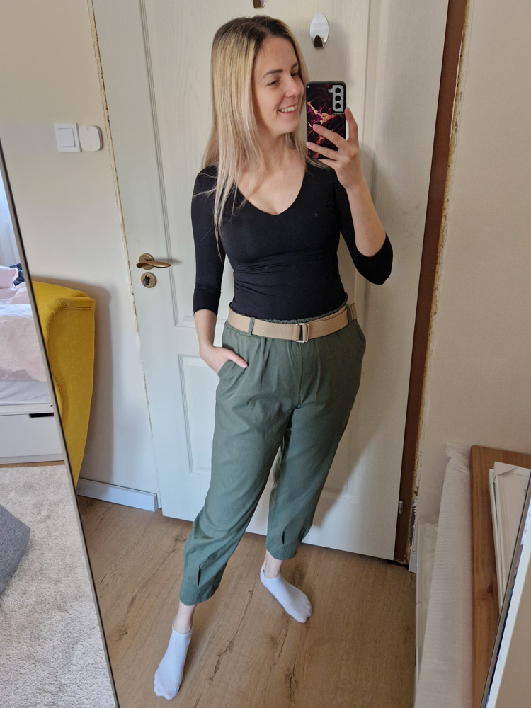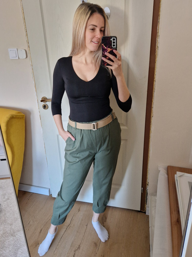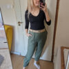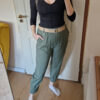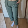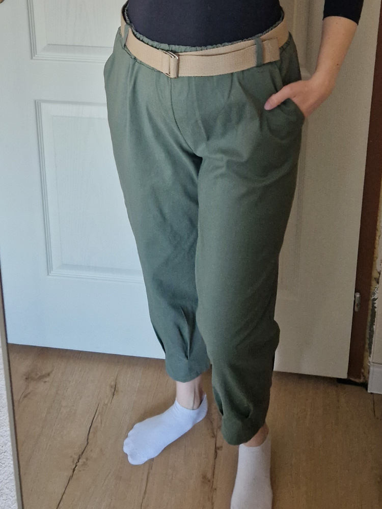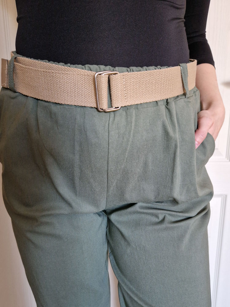 Khaki magas derekú női nadrág ajándék övvel - elegáns, kényelmes fazon XL méretig