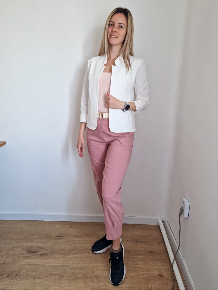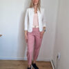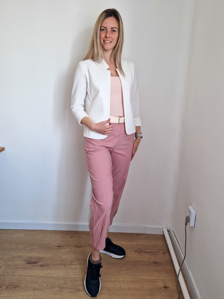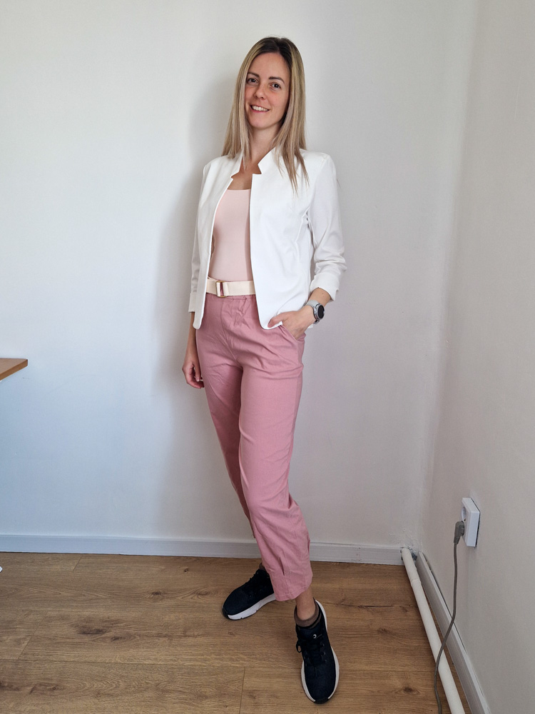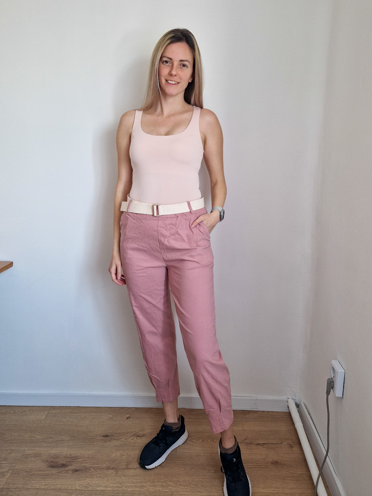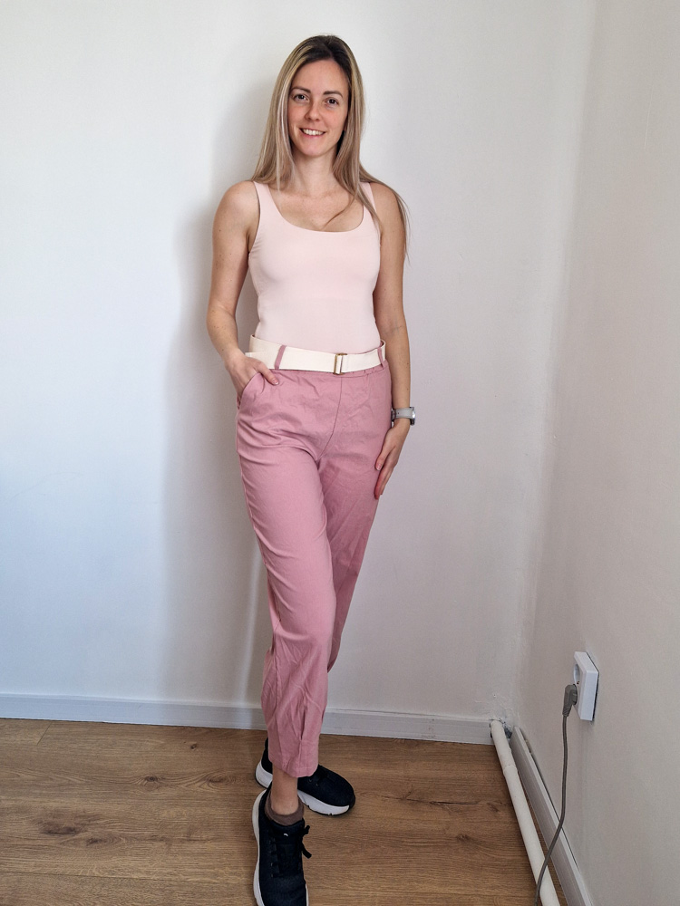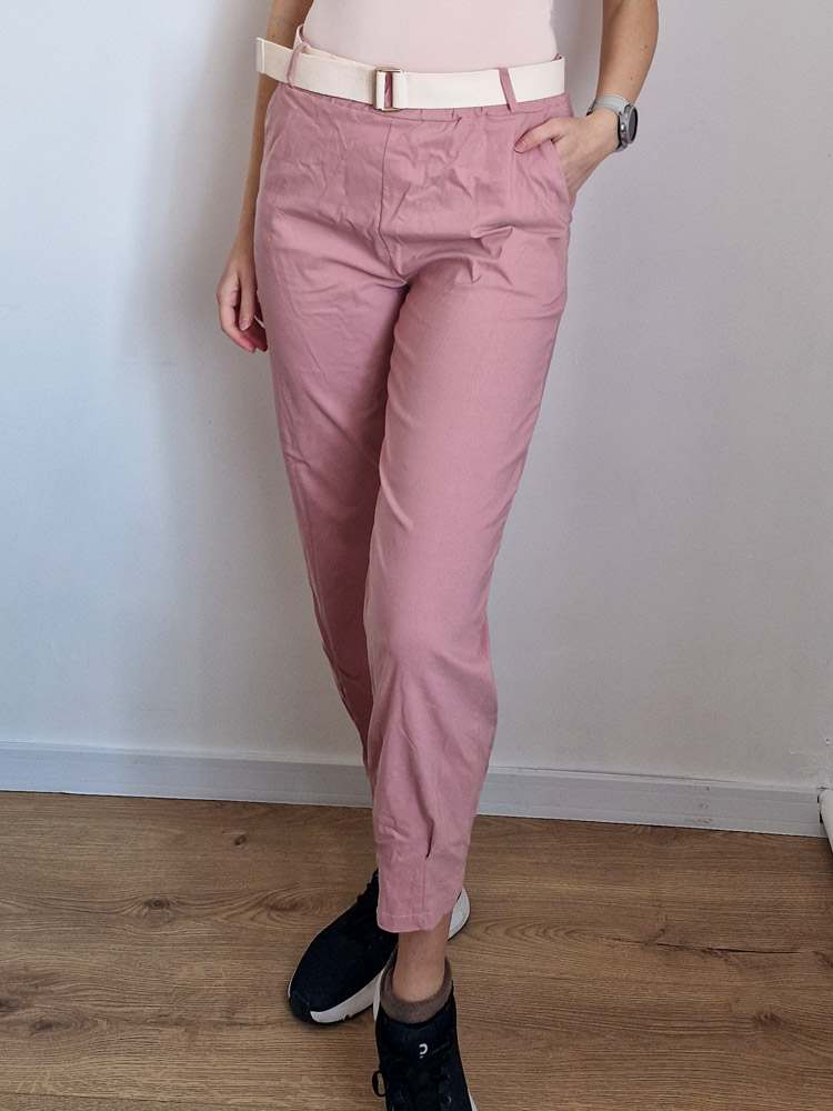 Mályva magas derekú női nadrág ajándék övvel - elegáns, kényelmes fazon XL méretig