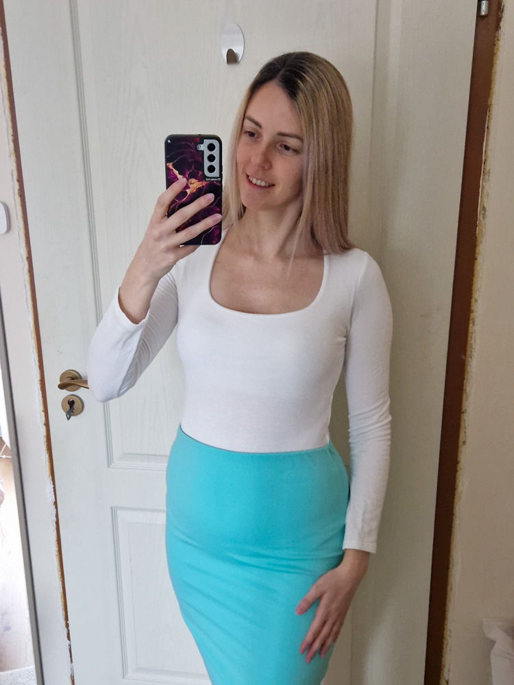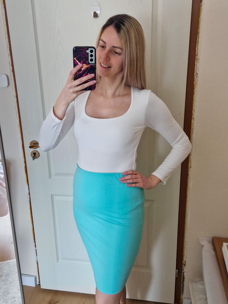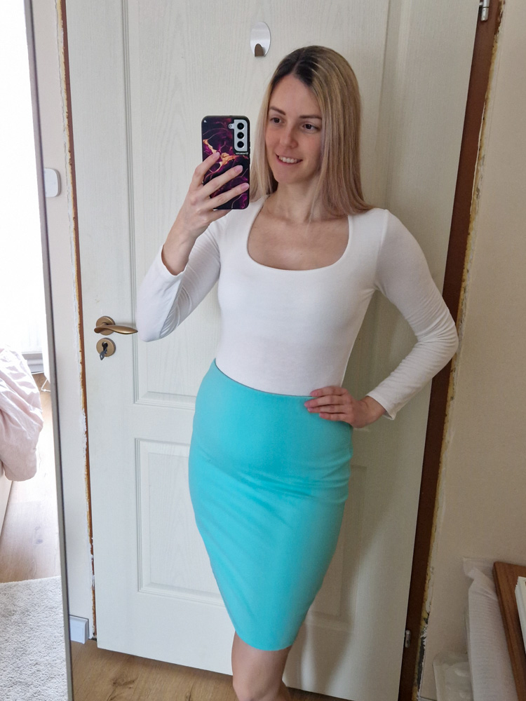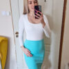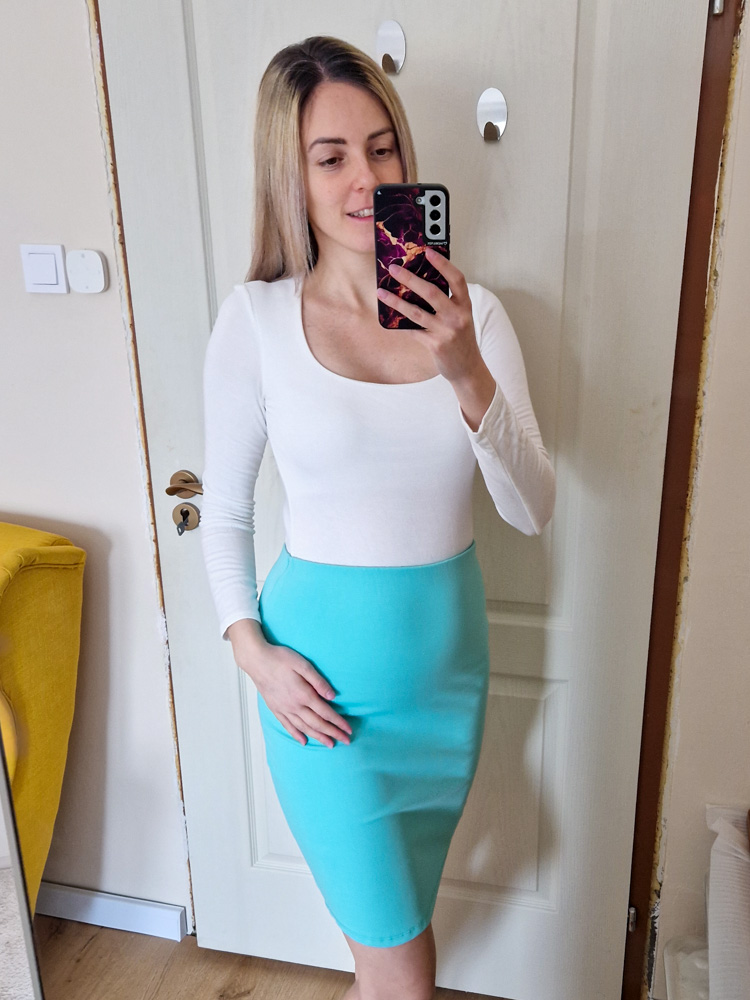– Térdig érő, klasszikus ceruzaszoknya szabás – irodába, ügyintézéshez, randira is tökéletes