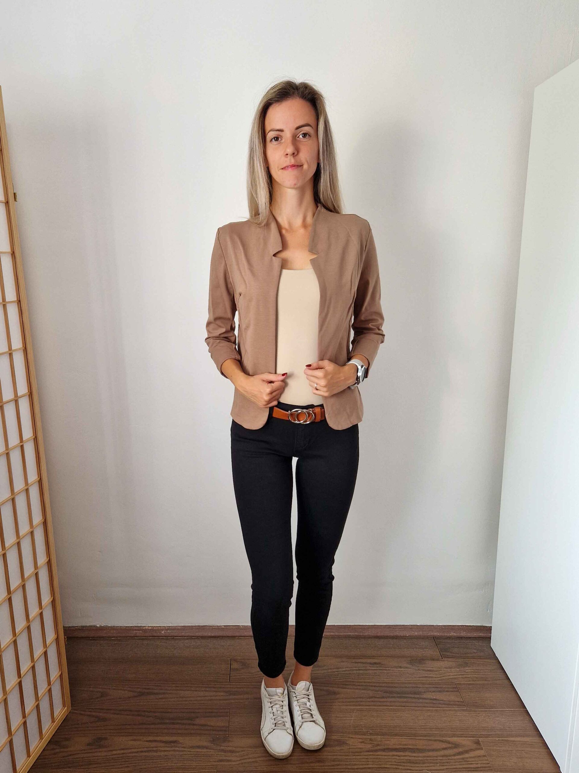 Egyméretes darab, S-L-ig nyúlik, szuper elasztikus anyagból készült blézer