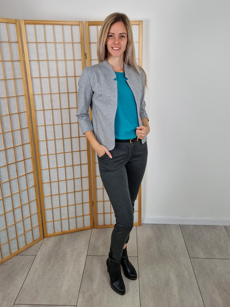 Camilla cirmos szürke, karcsúsító hatású elegáns pamut blézer