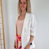 Női hosszabb fazonú fehér blézer felgombolható ujjakkal
