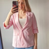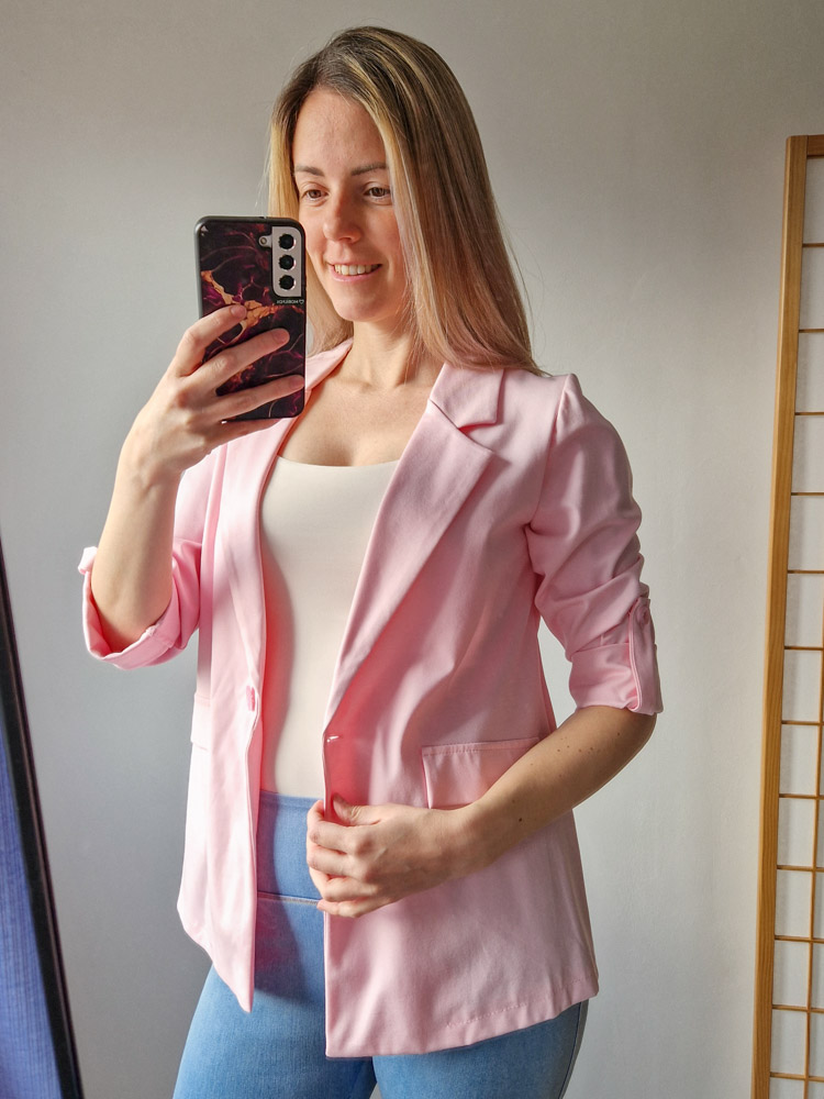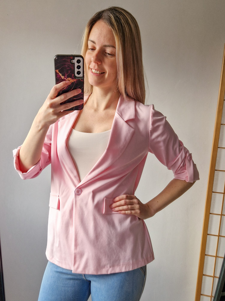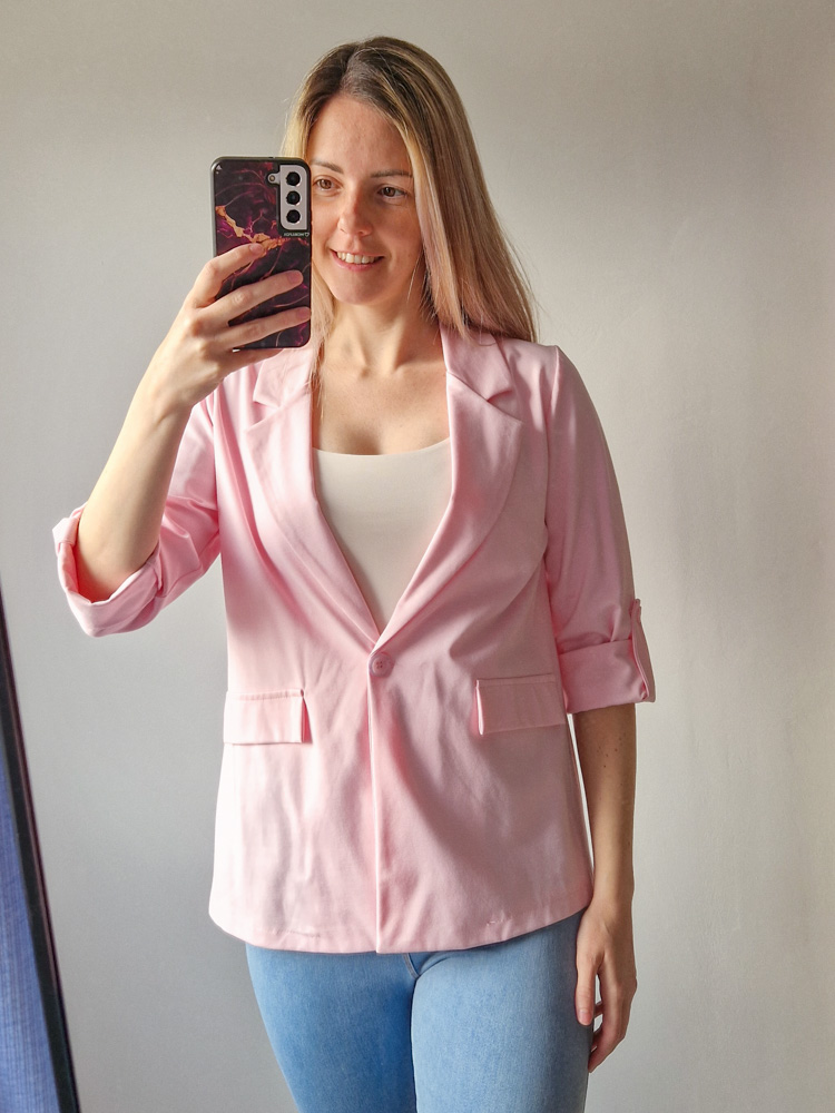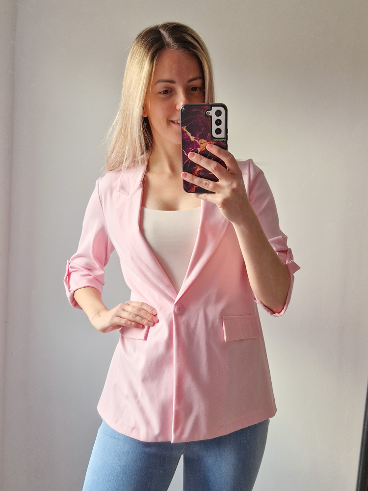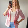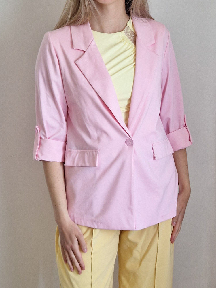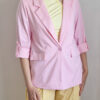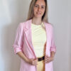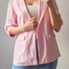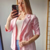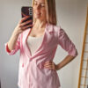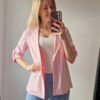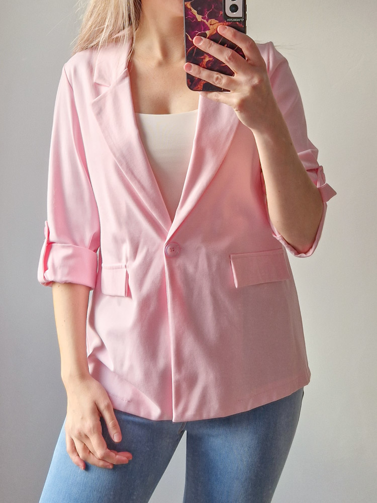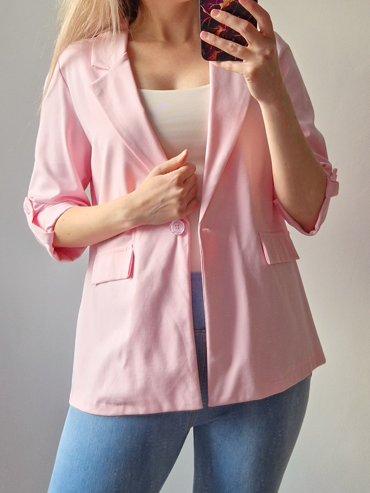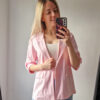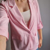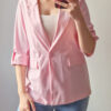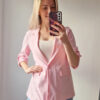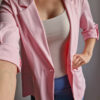 Női hosszabb fazonú rózsaszín blézer felgombolható ujjakkal
