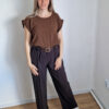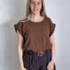 Csokibarna fodros vállú felső