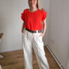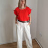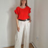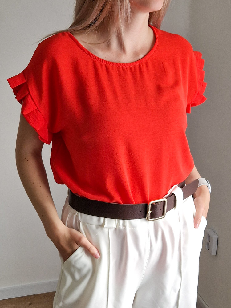 Dóra korall fodros felső XL méretig