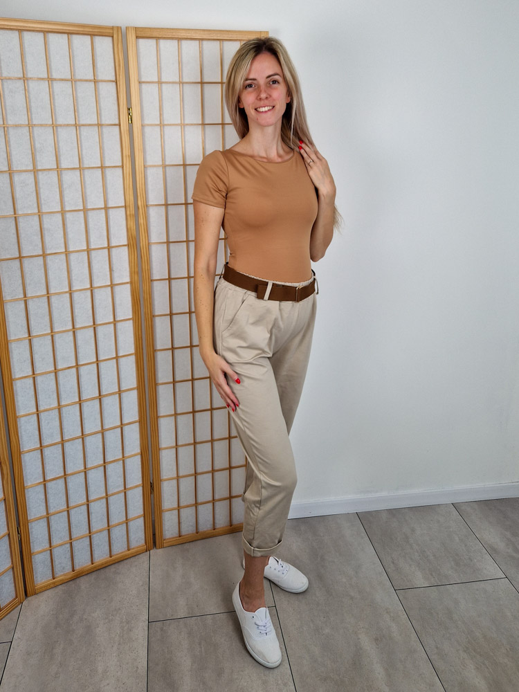 Bézs nadrág szuper anyagból ajándék övvel - XL méretig