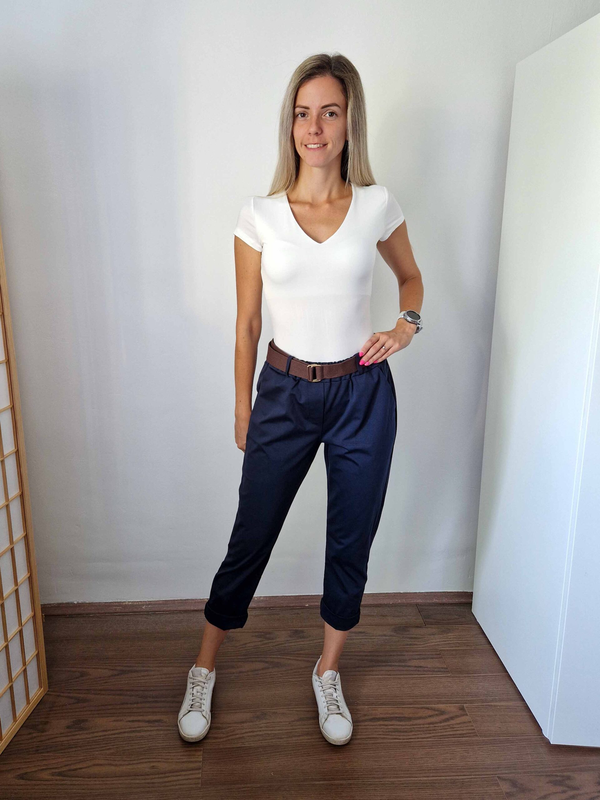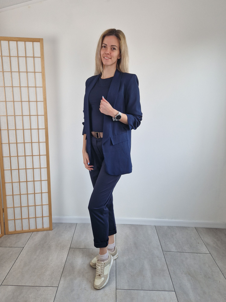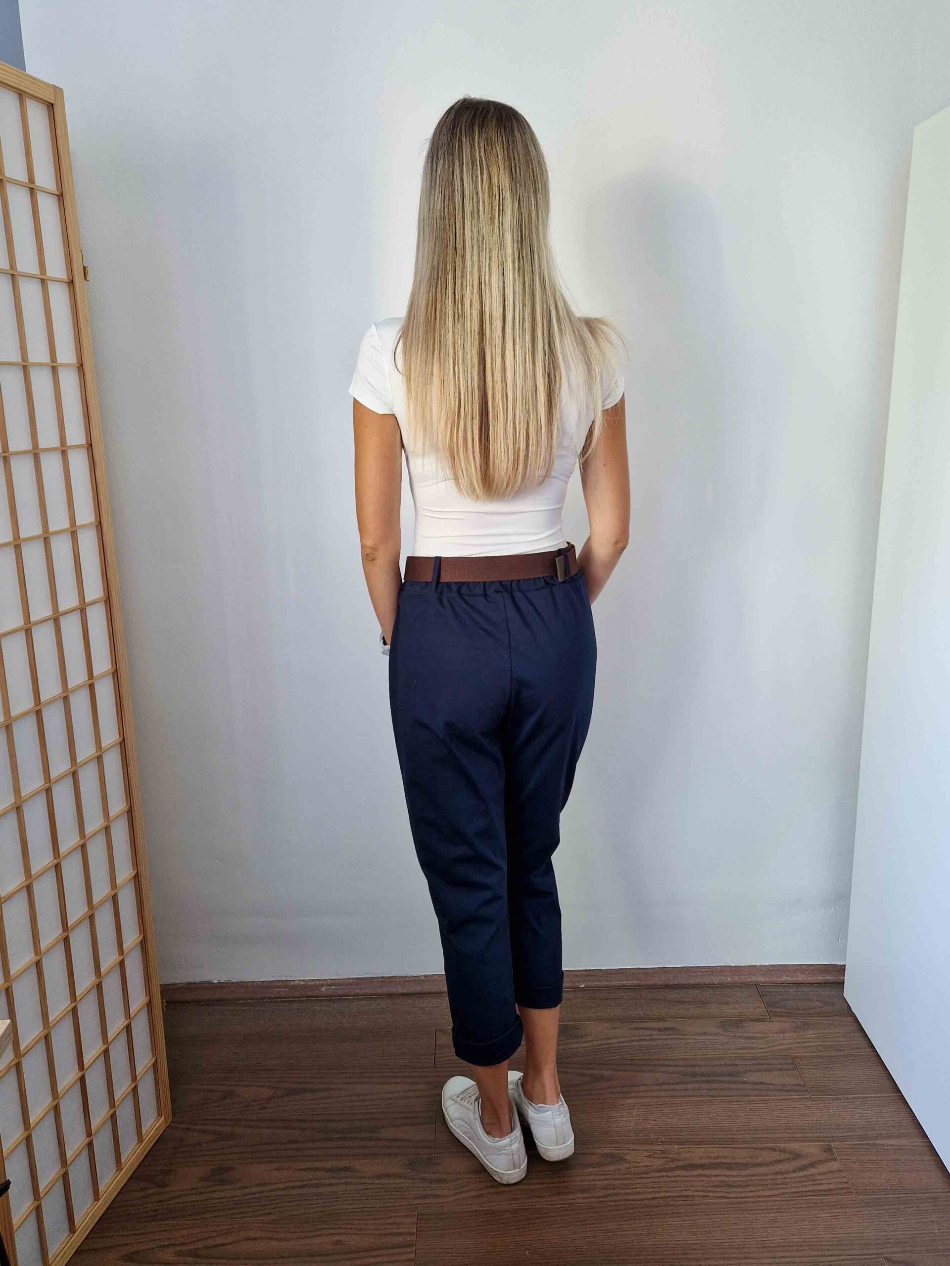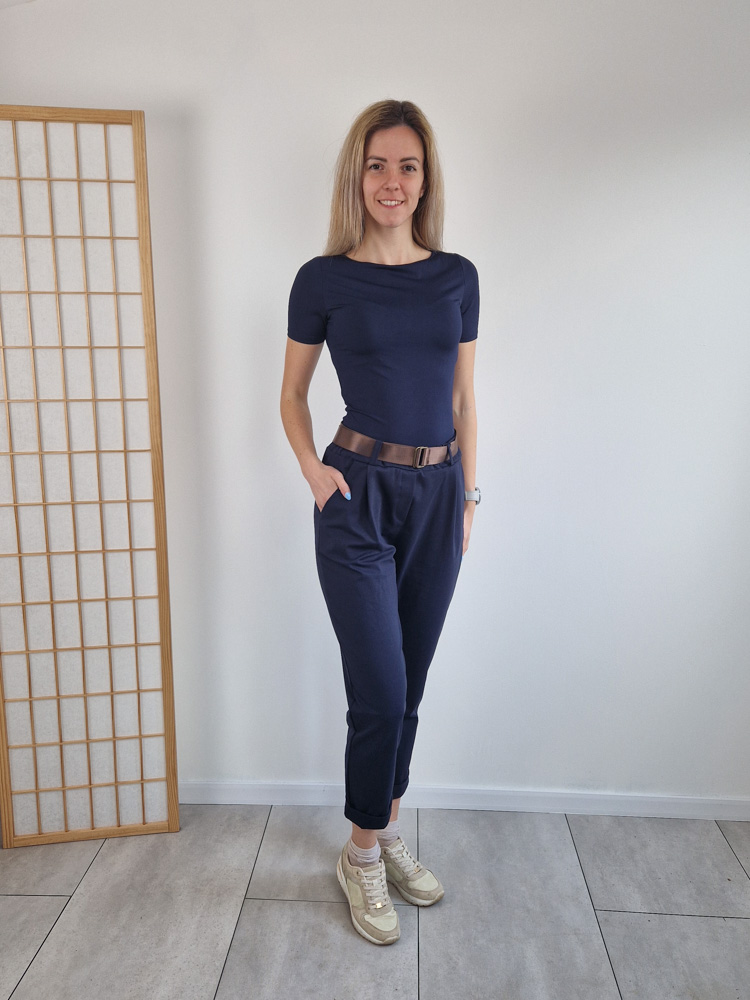 Sötétkék nadrág szuper anyagból ajándék övvel - XL méretig
