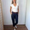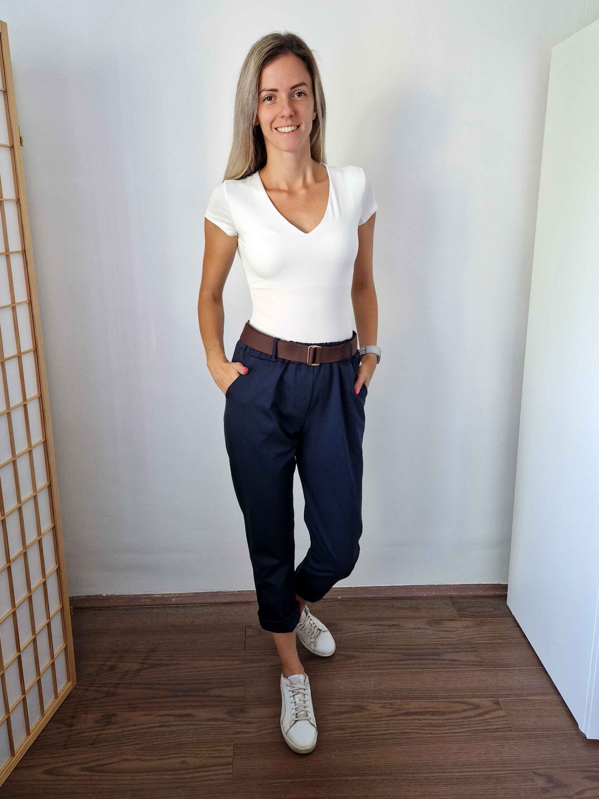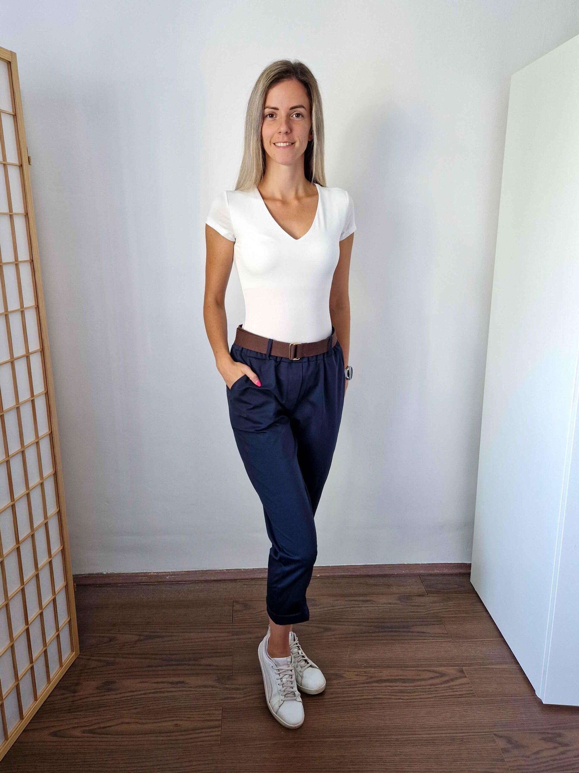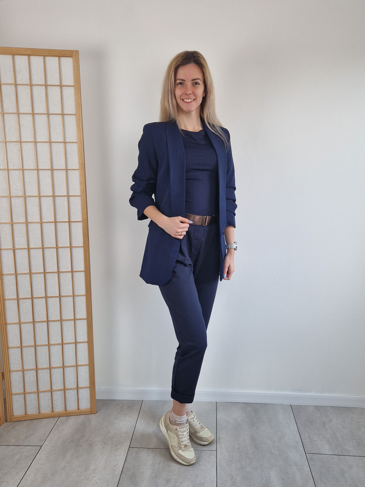 Sötétkék nadrág szuper anyagból ajándék övvel - XL méretig