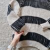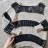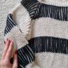 Bézs csíkos kötött pulóver különleges kötésmintával