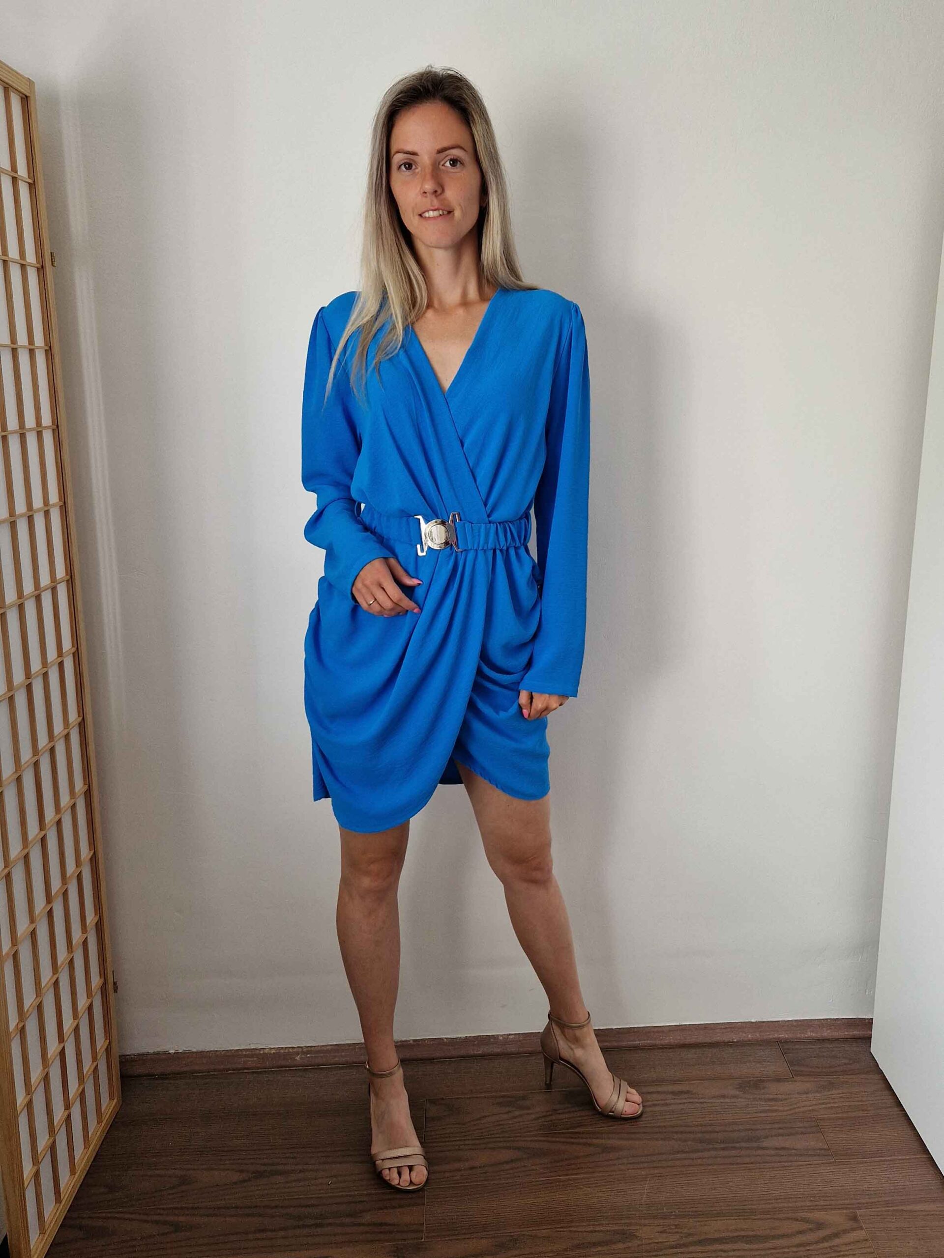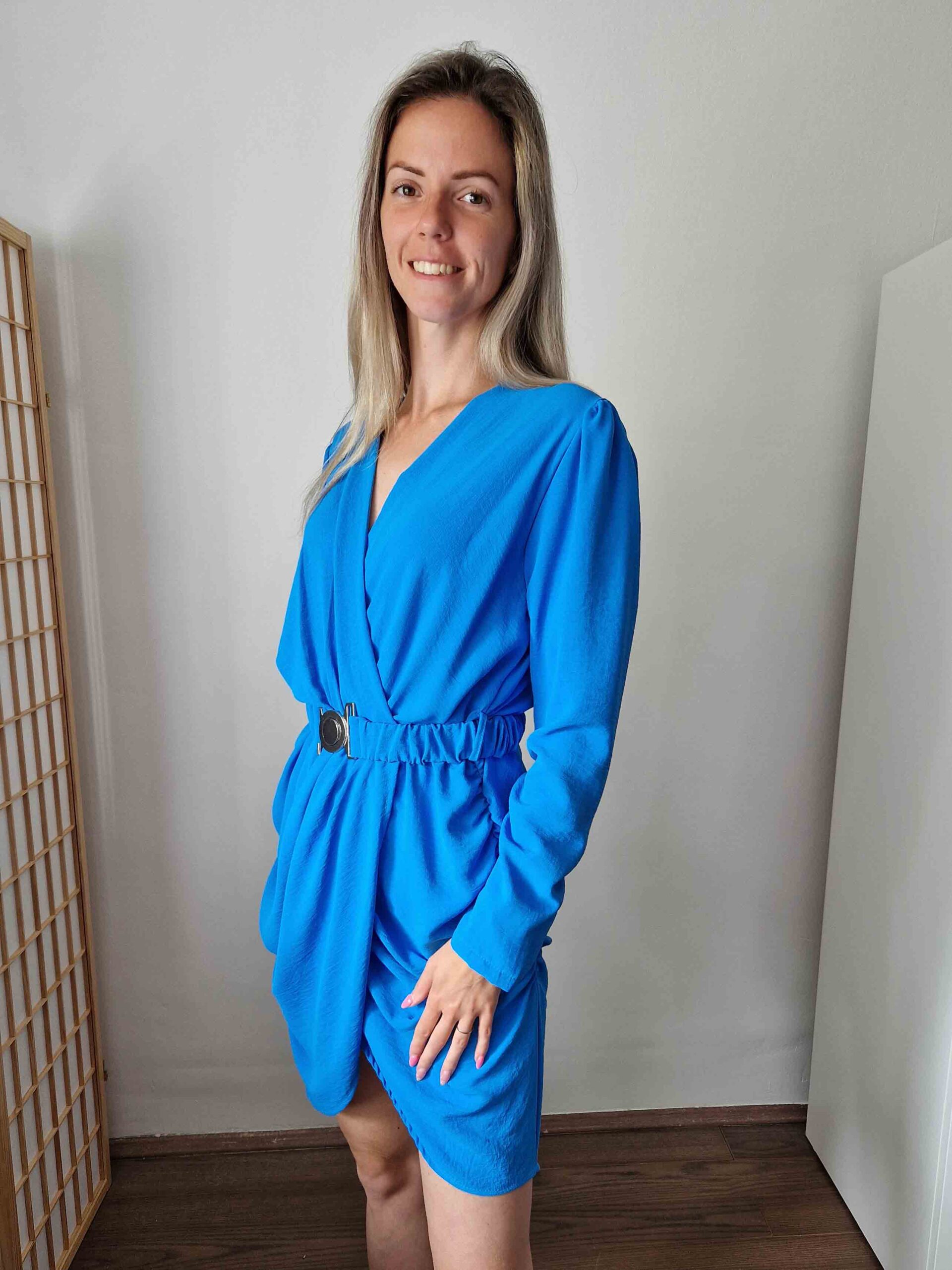 Kék alkalmi ruha csatos övvel