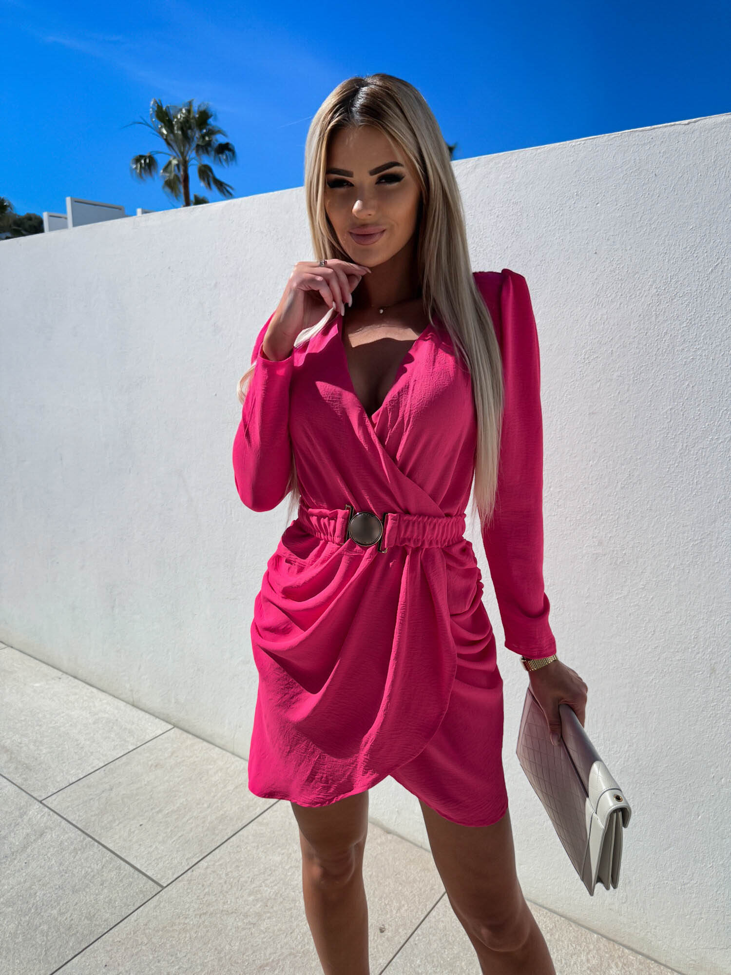 Rózsaszín alkalmi ruha csatos övvel