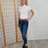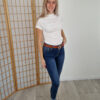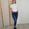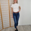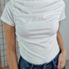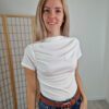 Fehér húzott derekú magasnyakú felső bordázott anyagból