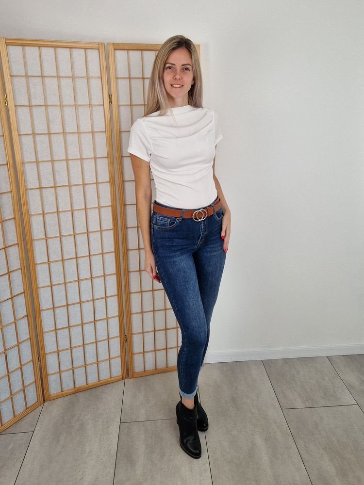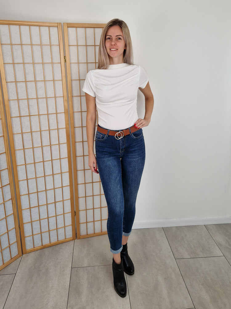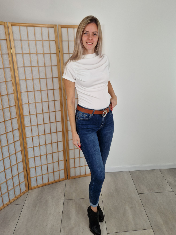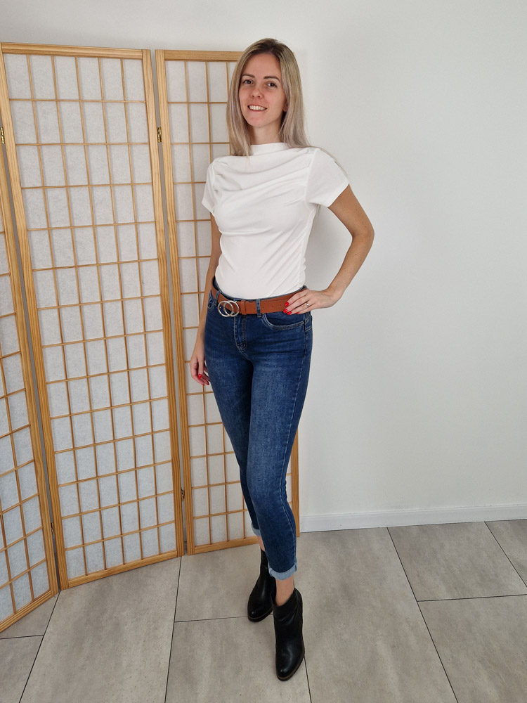 Klasszikus alapdarab, amit bármivel könnyedén kombinálhatsz. A bordázott, enyhén rugalmas anyag szépen követi az alakot, a húzott oldalrész pedig karcsúsítja a derekat. A letisztult, magas nyakvonal nőies, modern megjelenést ad.