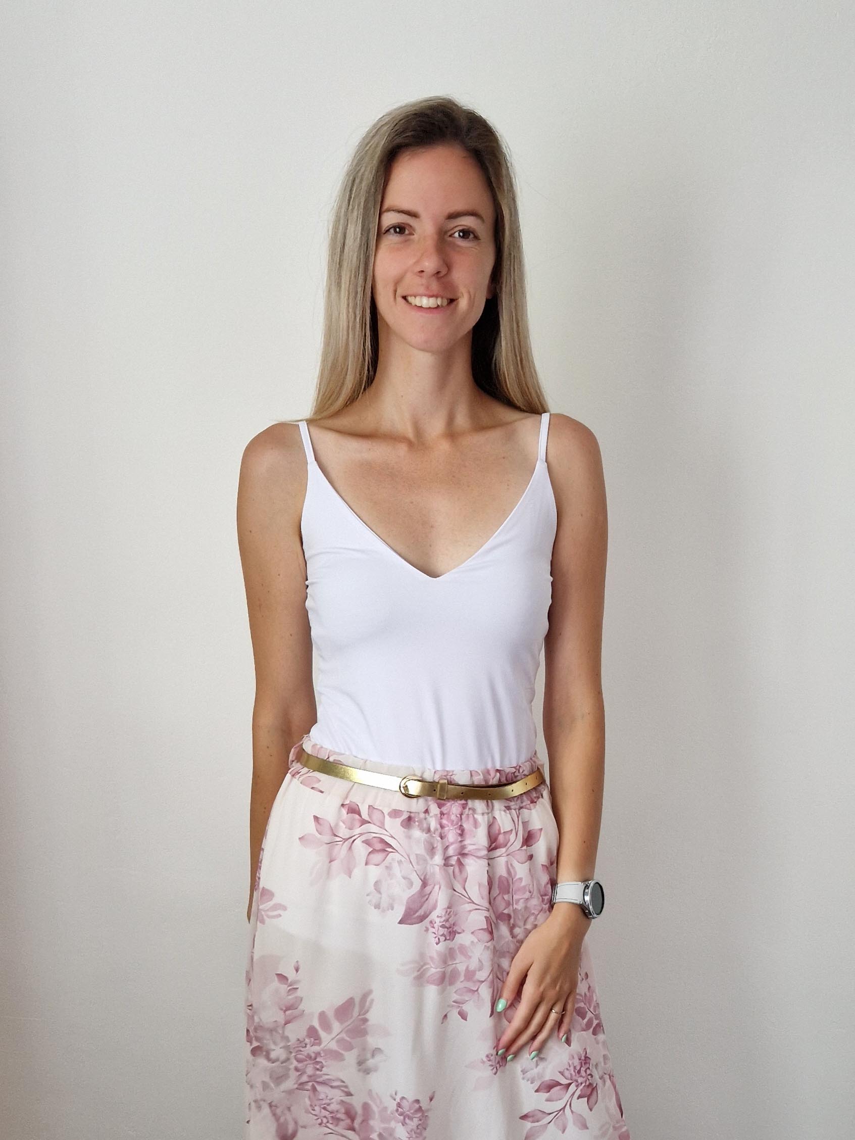 Vékonypántos V nyakú hófehér top