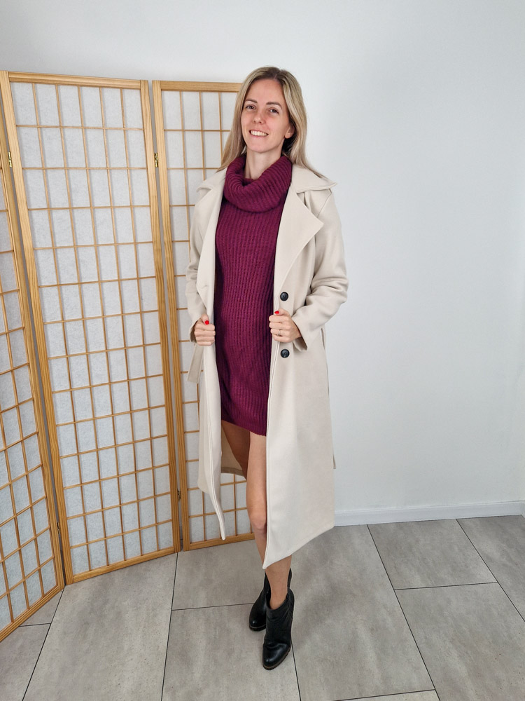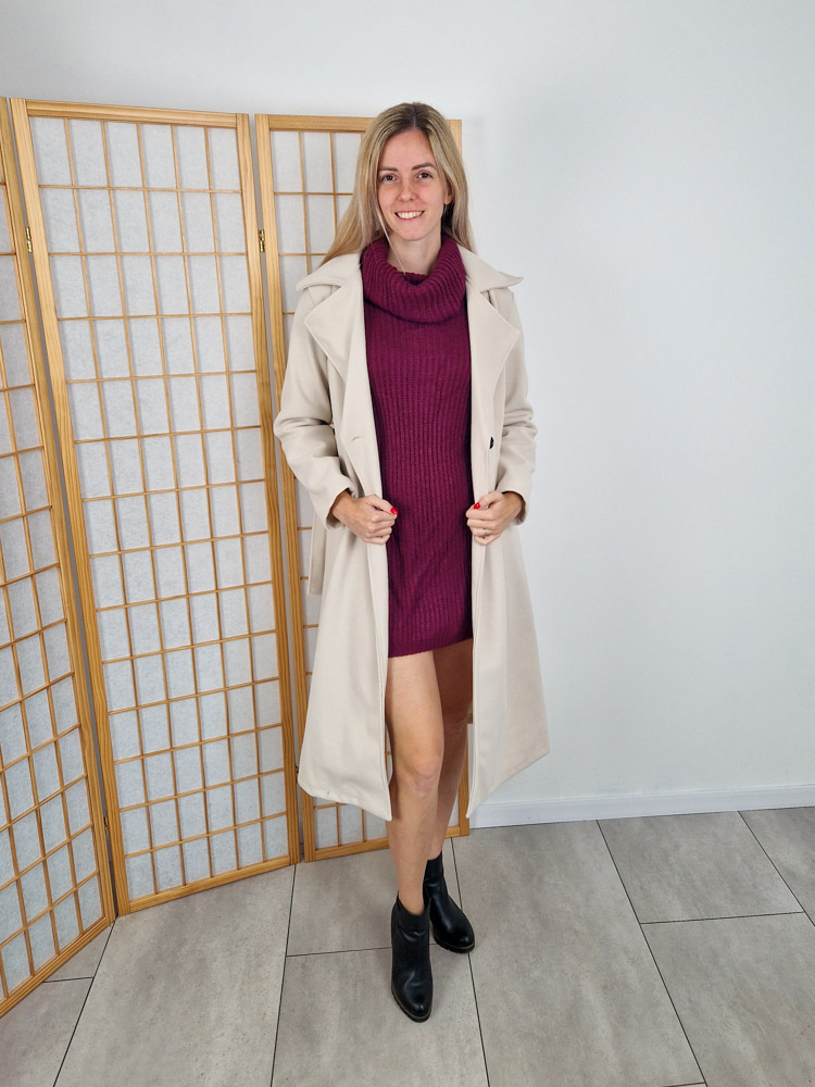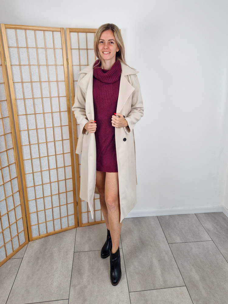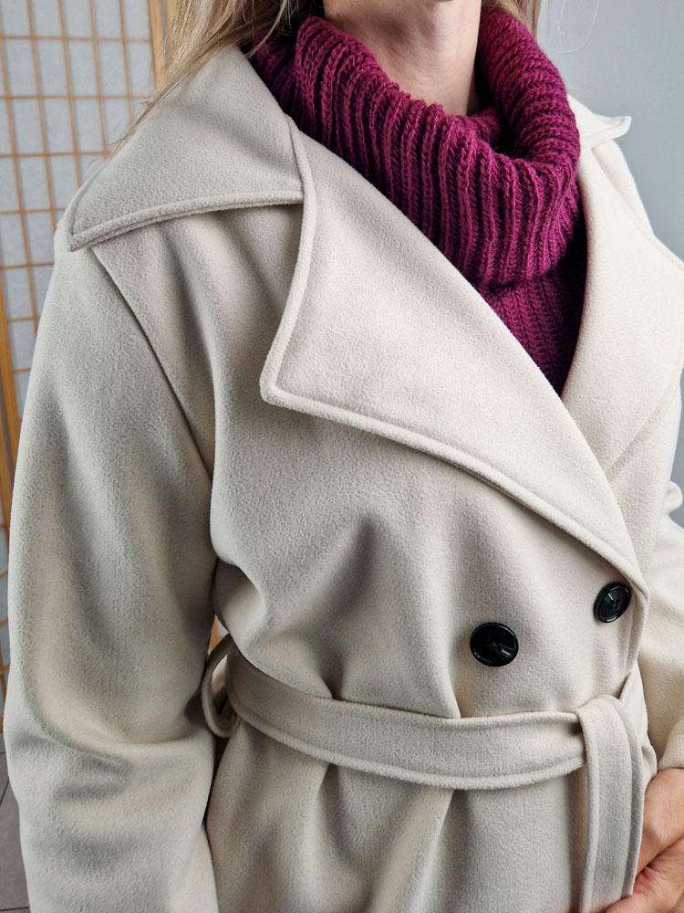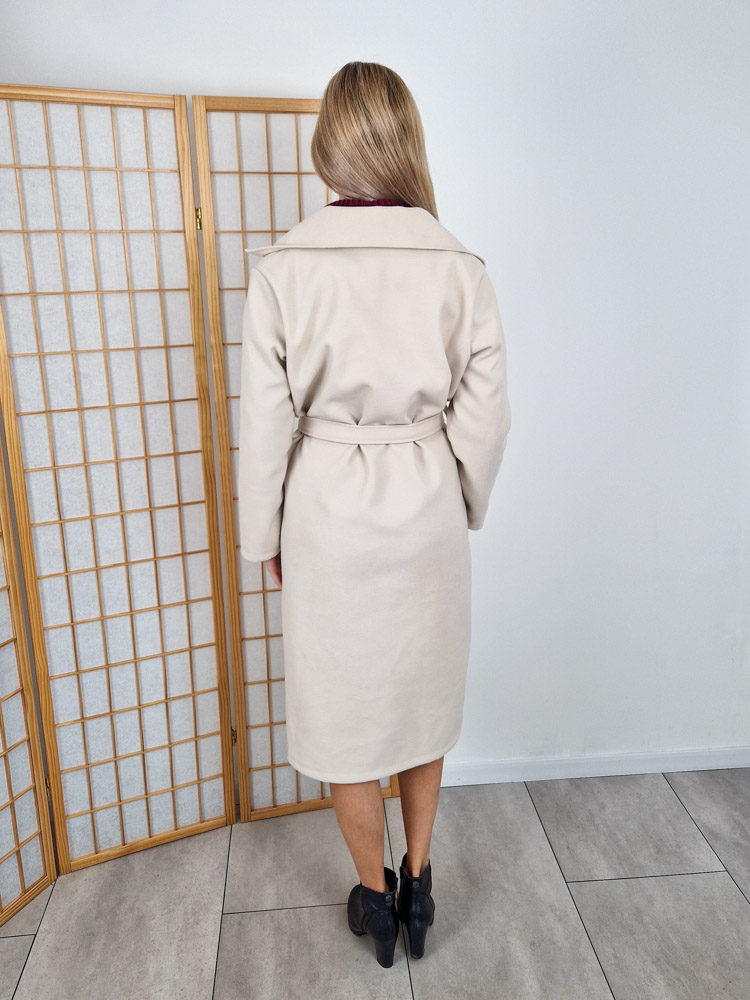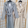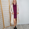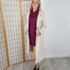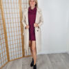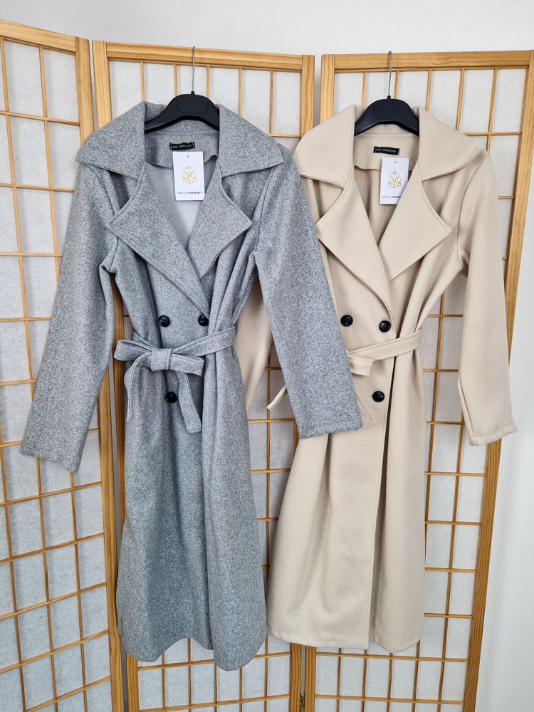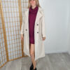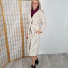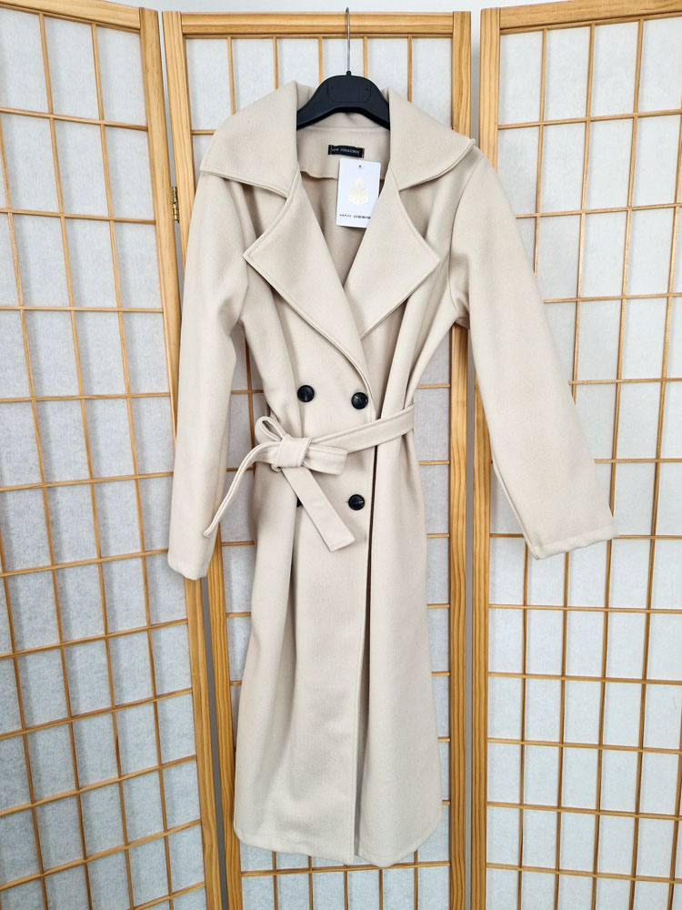 Bézs dupla gombsoros átmeneti hosszú szövetkabát