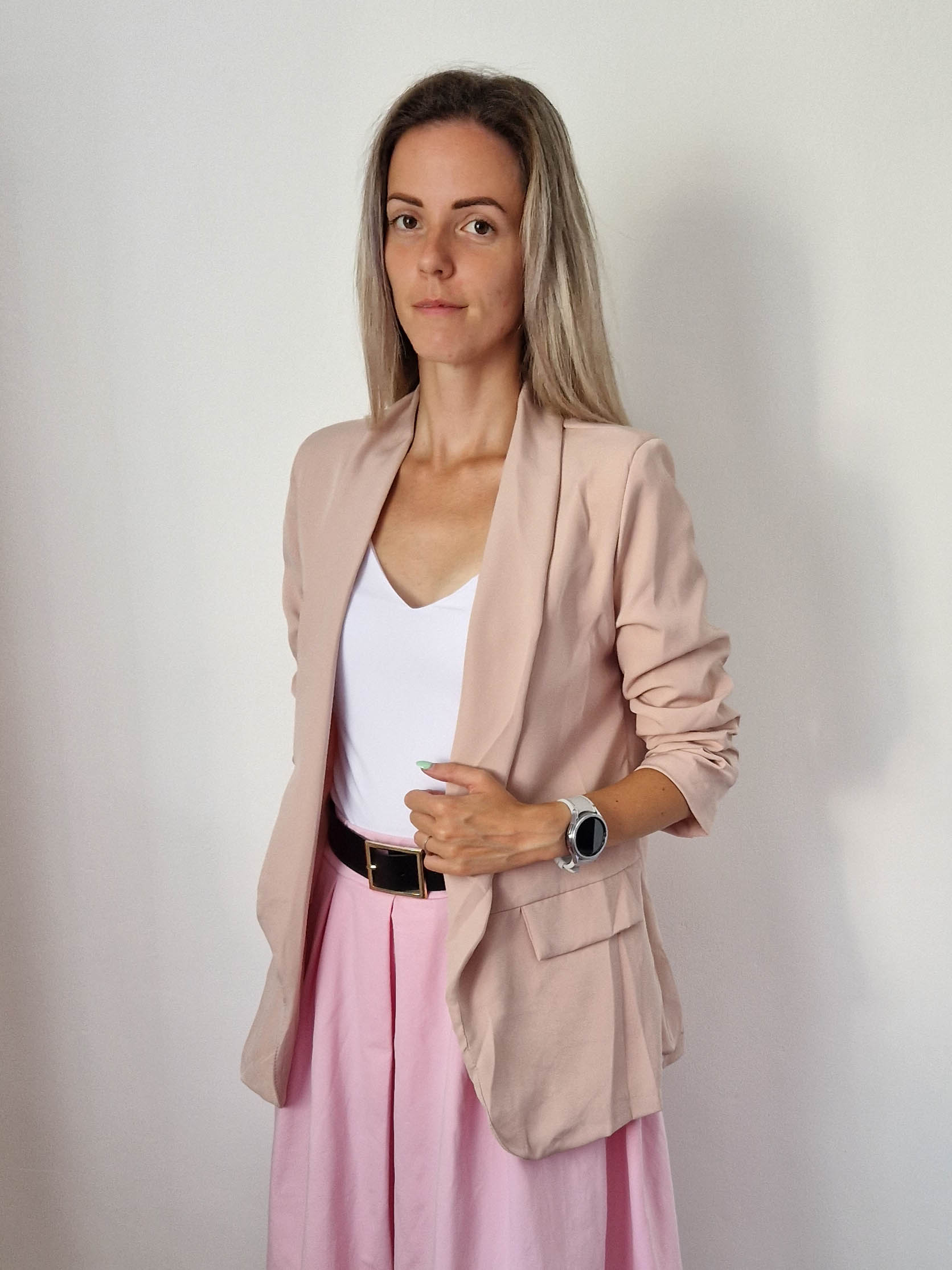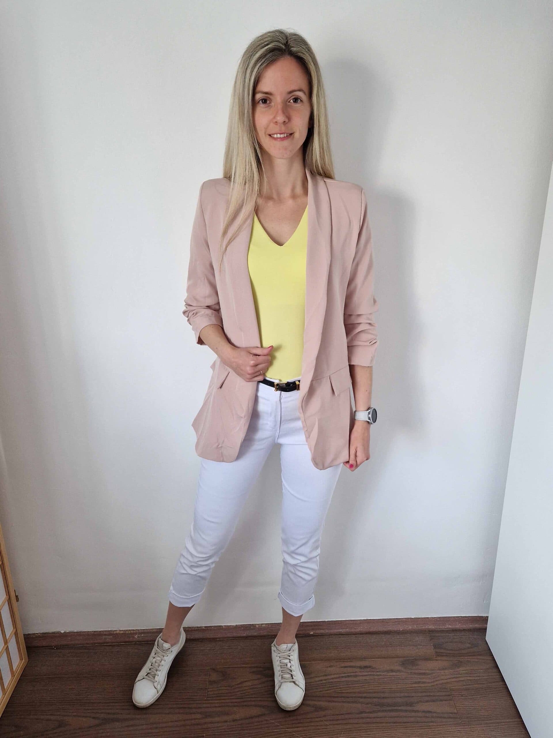 A blézer fazonjából adódóan nem kell, hogy összeérjen elöl.