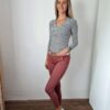 V nyakú csíkos szürke pamutfelső bordázott anyagból