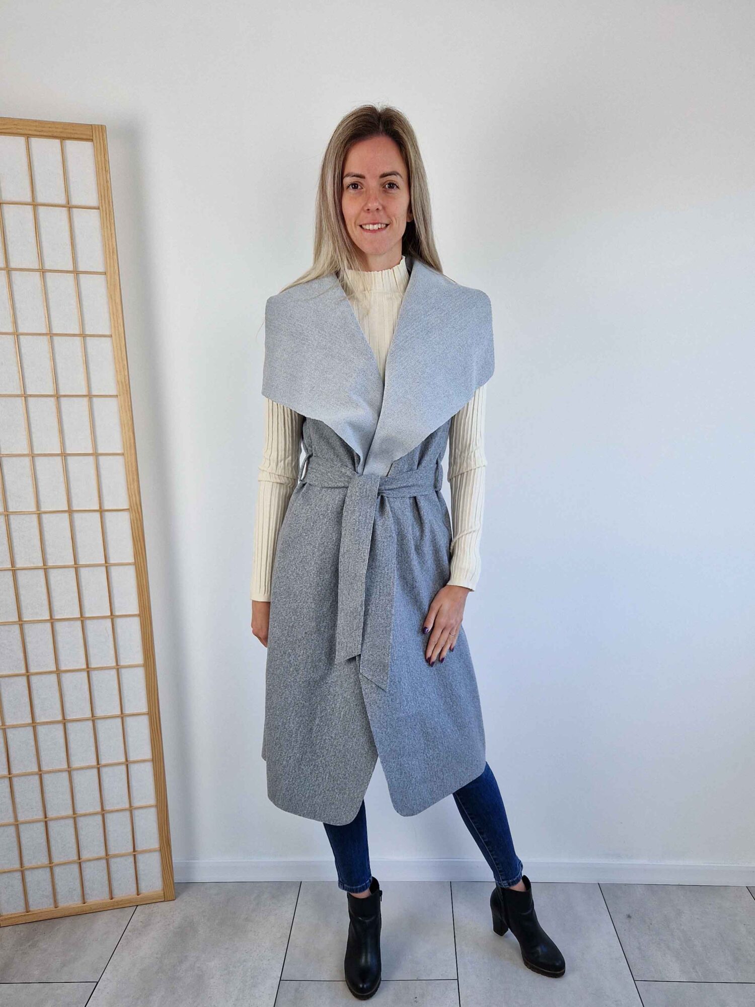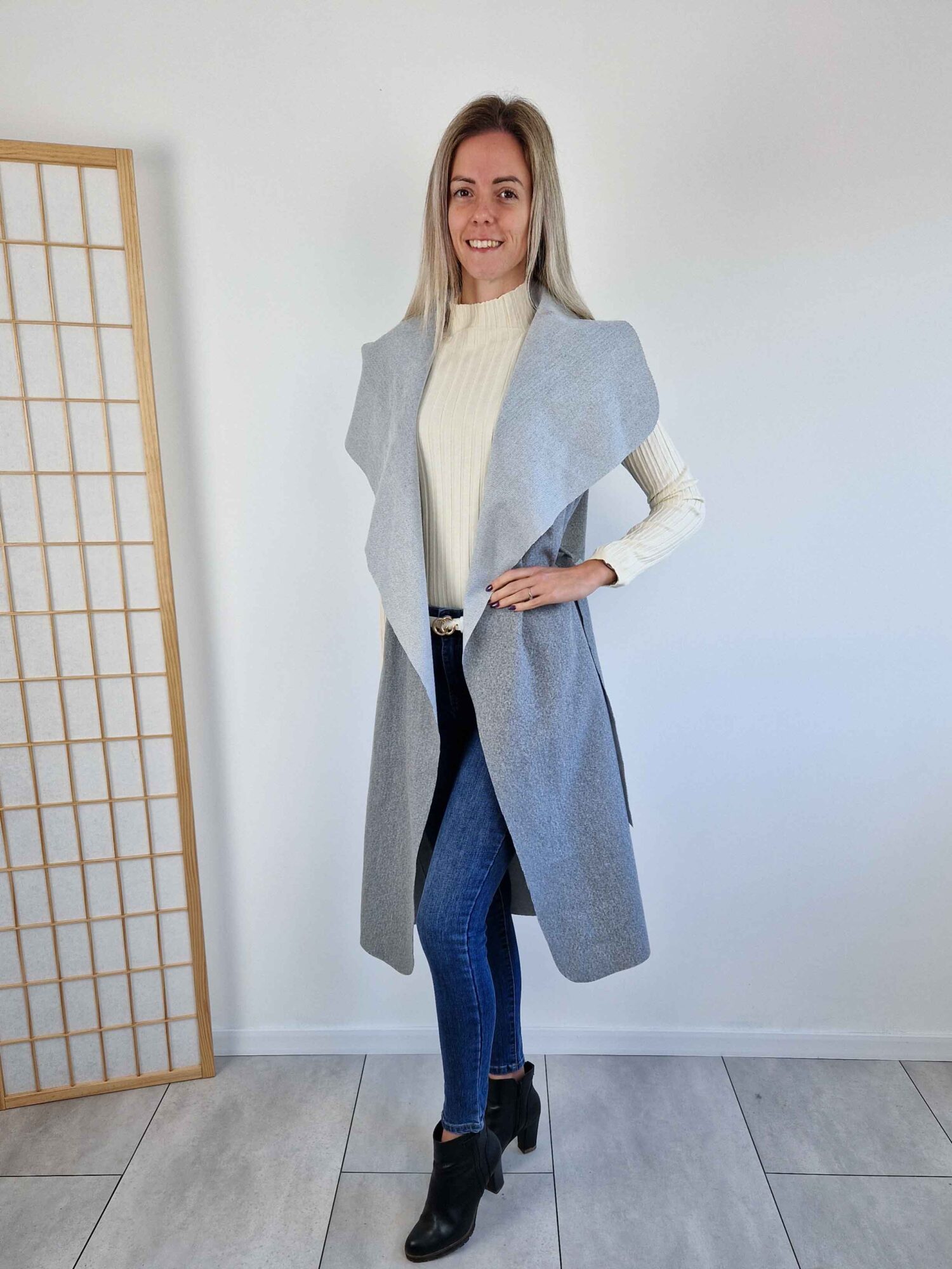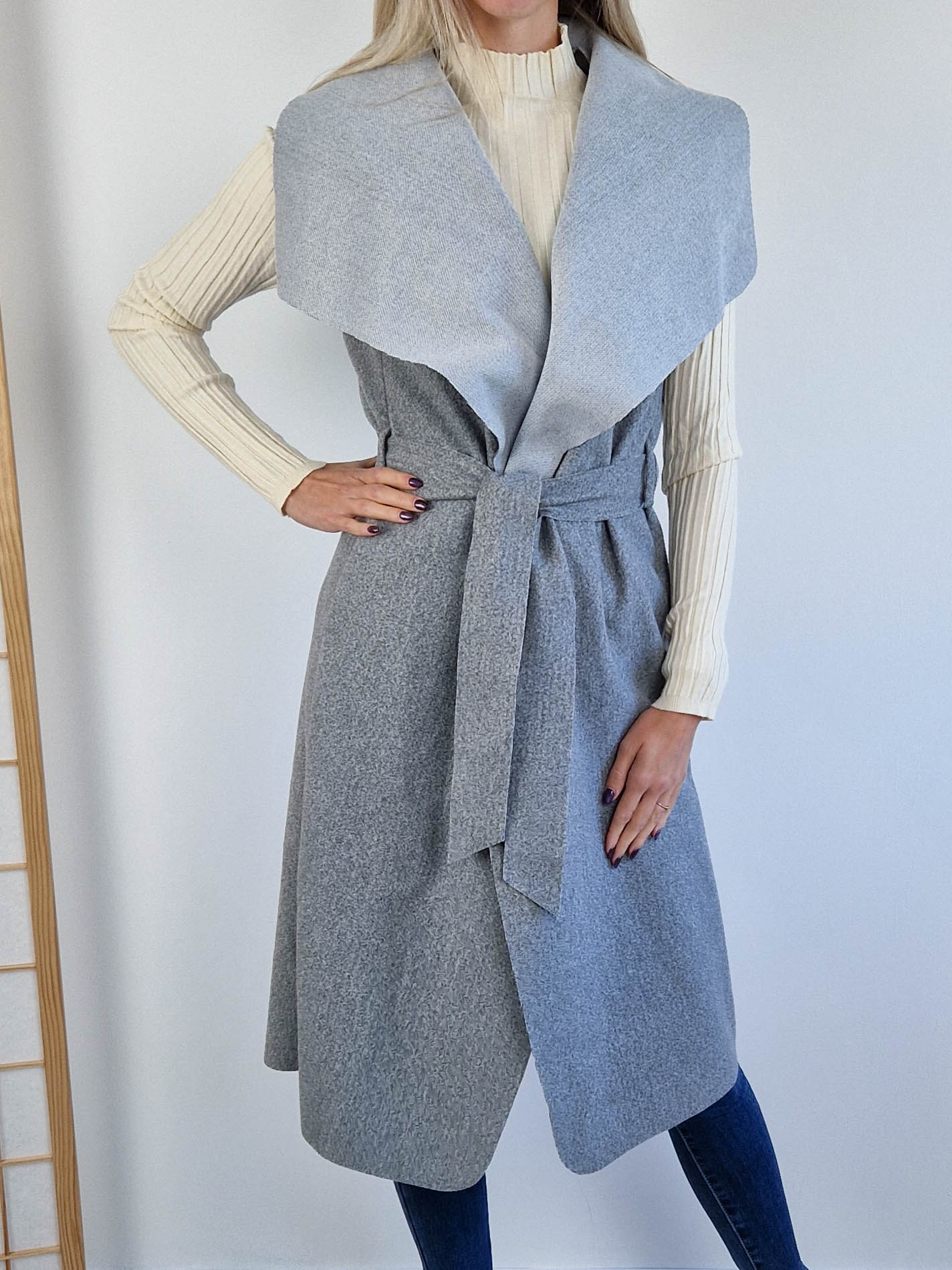 Klaudia szürke filc mellény – hosszú fazon