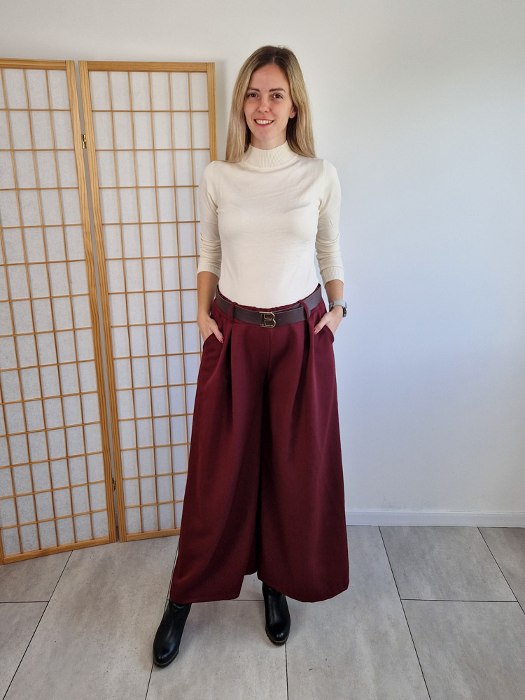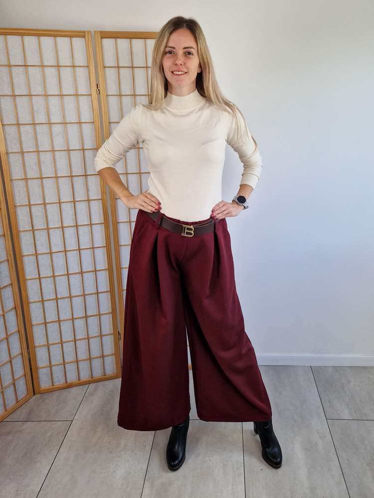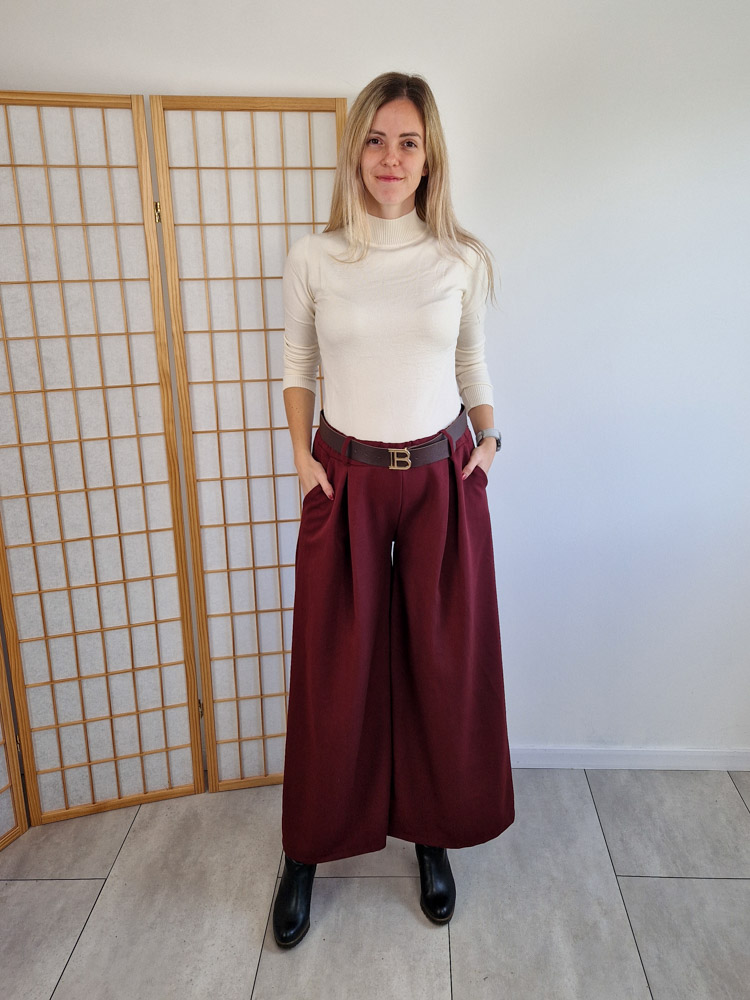 Elegáns, nőies és kényelmes – a bordó Linett palazzo nadrág igazi gardrób-alapdarab, amely minden alkalomhoz stílusos választás. Mély bordó árnyalata különleges, mégis könnyen kombinálható, így a mindennapi eleganciától az alkalmi megjelenésig sokféleképpen viselheted.