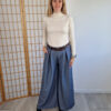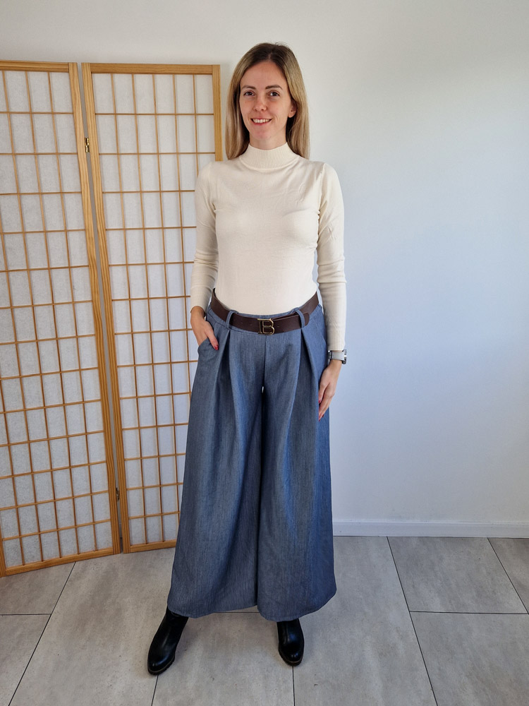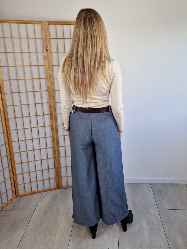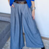 A Linett palazzo nadrág farmerkék színben a klasszikus farmer hatását idézi, mégis sokkal könnyedebb és elegánsabb viselet. Tökéletes választás, ha szereted a lezser, de nőies darabokat, amelyek jól kombinálhatók szinte bármilyen felsővel.