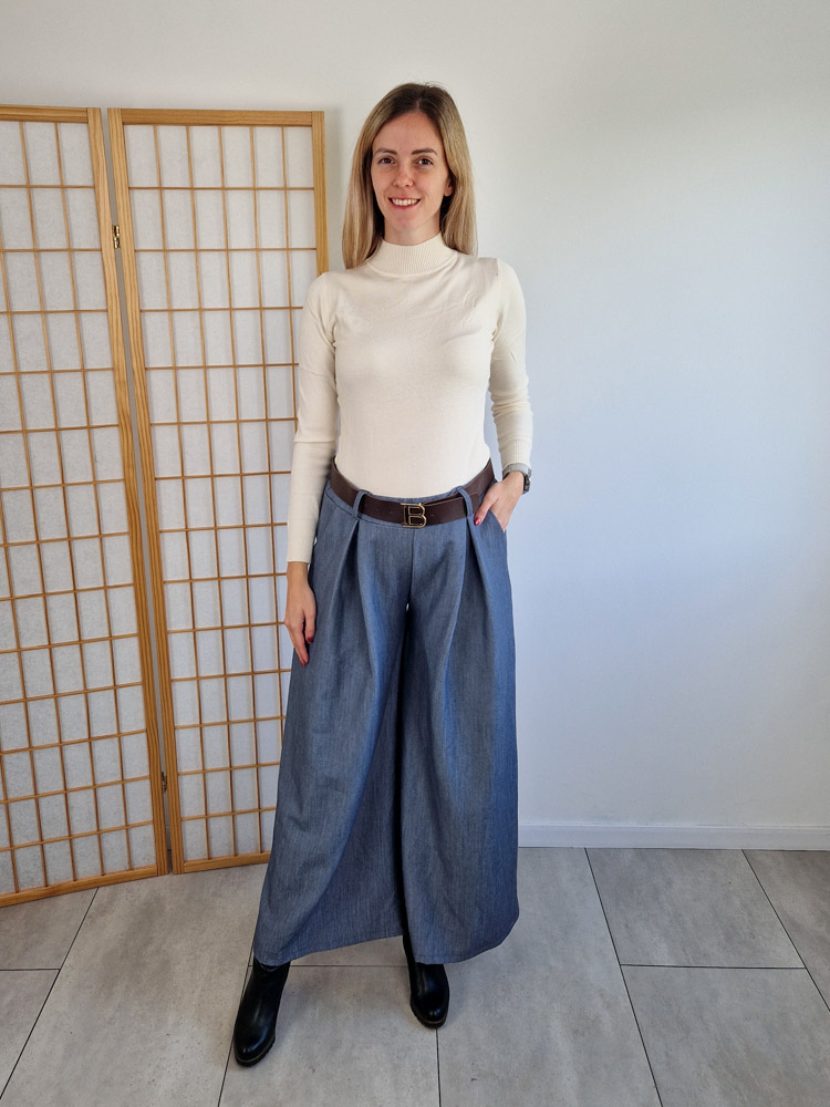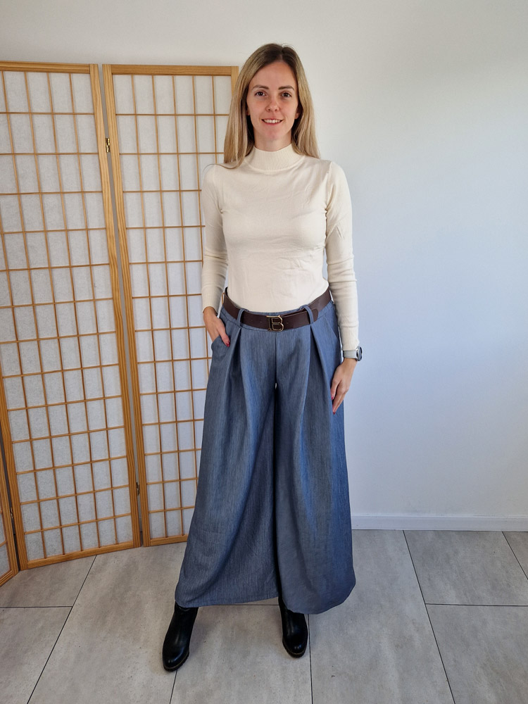 A farmerkék Linett palazzo nadrág az igazi mindenes darab: munkahelyre blézerrel elegáns, hétvégén sportcipővel és pólóval pedig lezser. Ráadásul a világos és sötét színekkel is remekül harmonizál, így bármelyik ruhatárba könnyedén beilleszthető.
