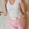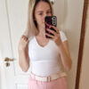 Kedvenc felsőtök most tört fehér színű, rövid ujjú, V nyakú basic felső változatban is.