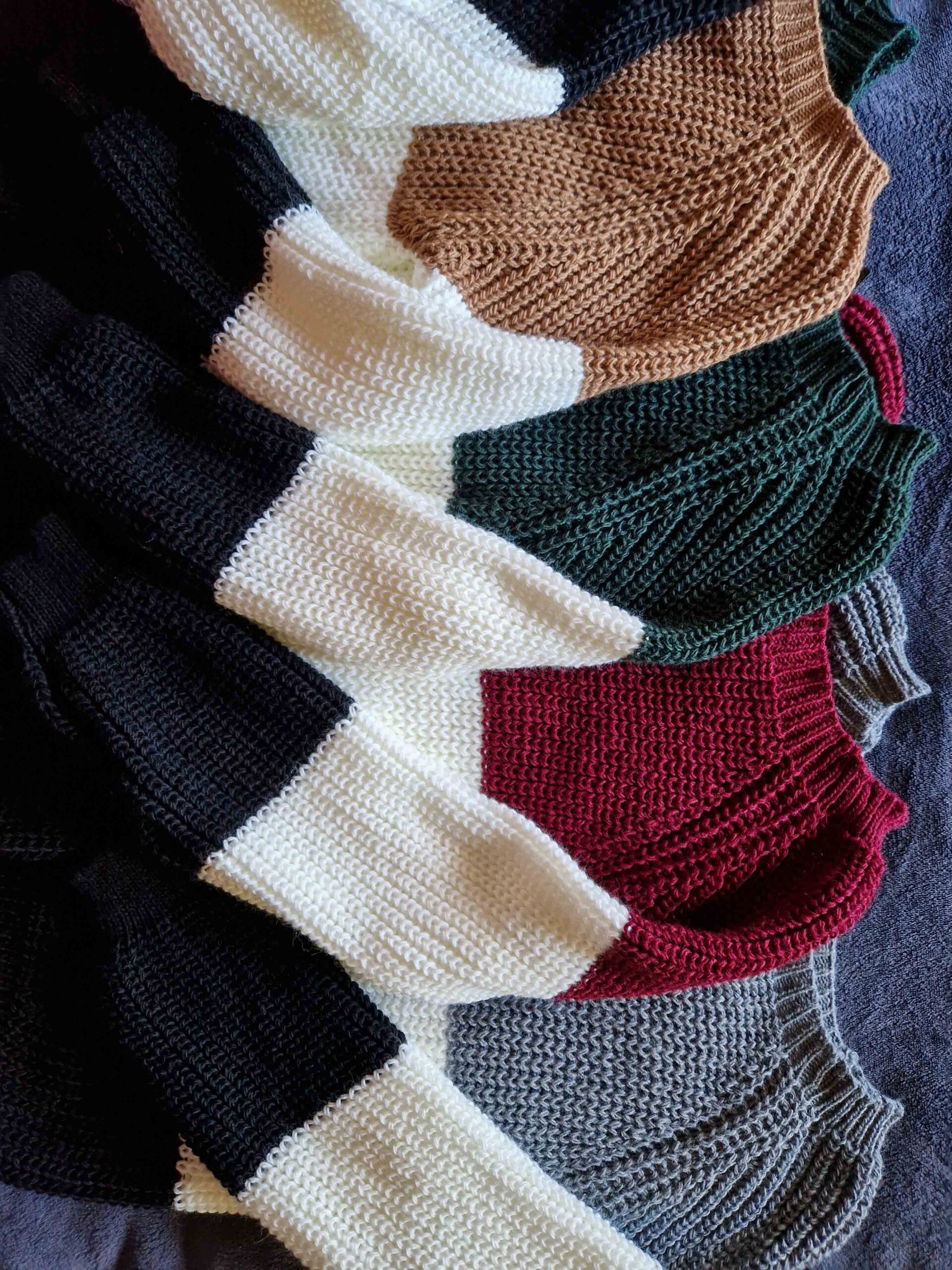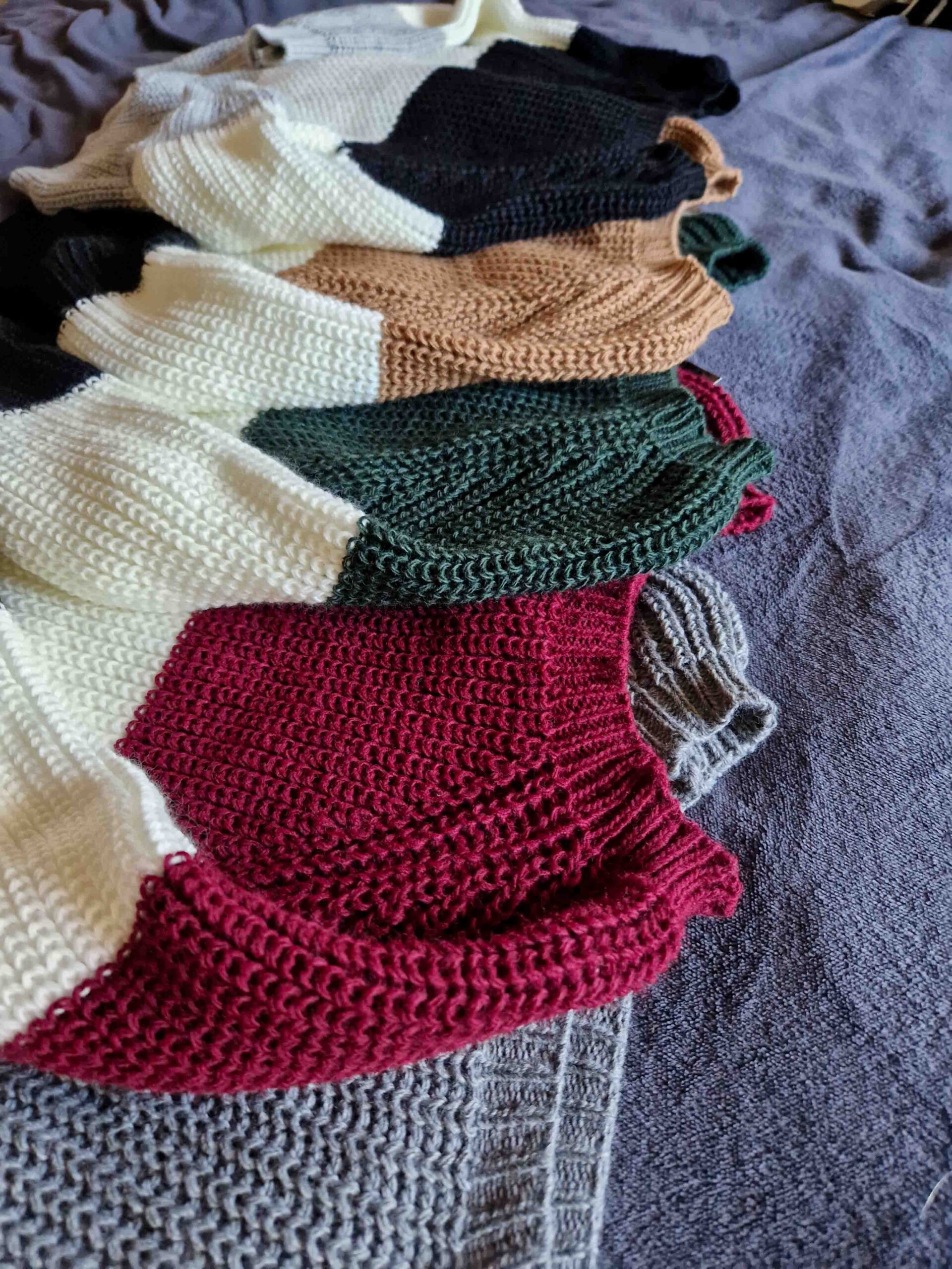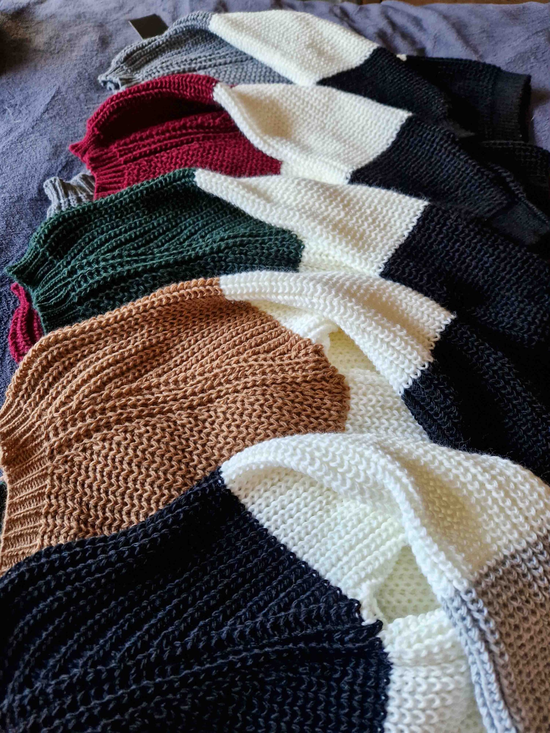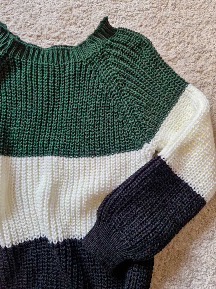 Sötétzöld-fehér-fekete csíkos kötött pulóver