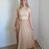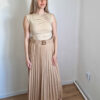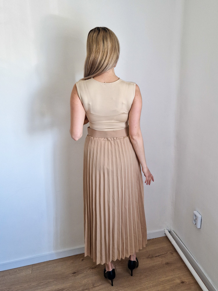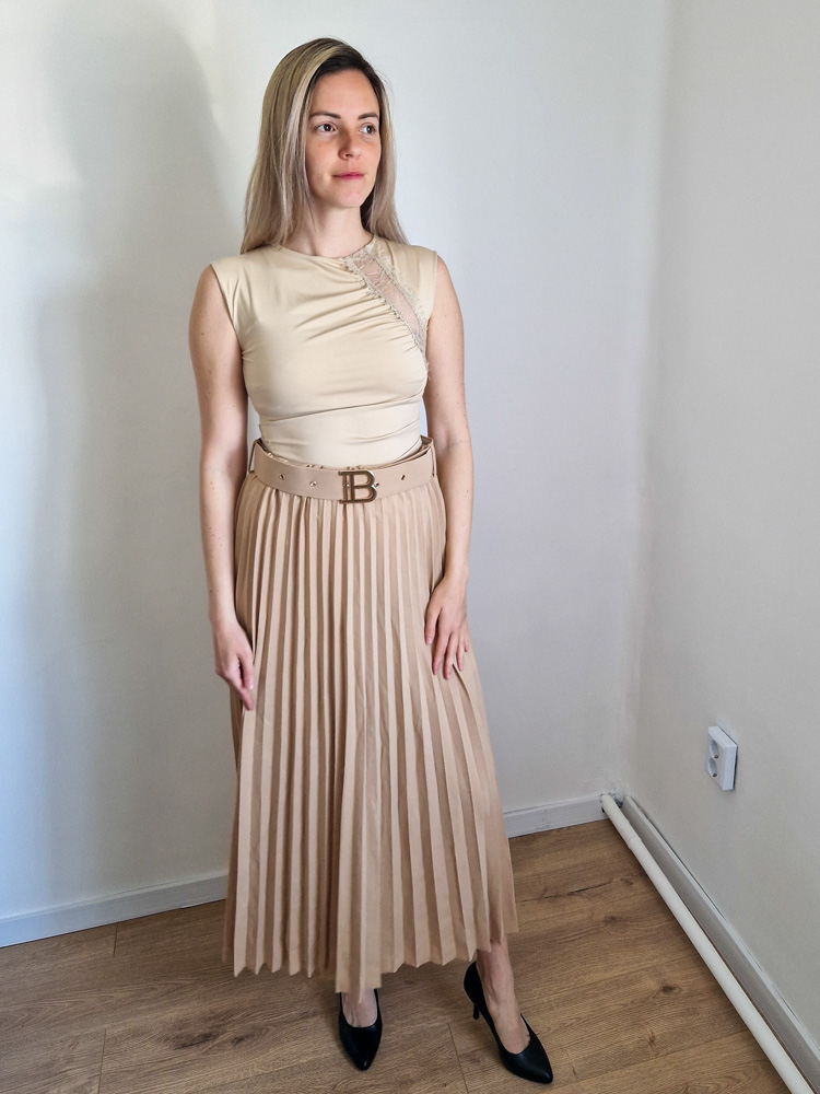 Luxe Rose bézs pliszírozott midi szoknya övvel