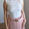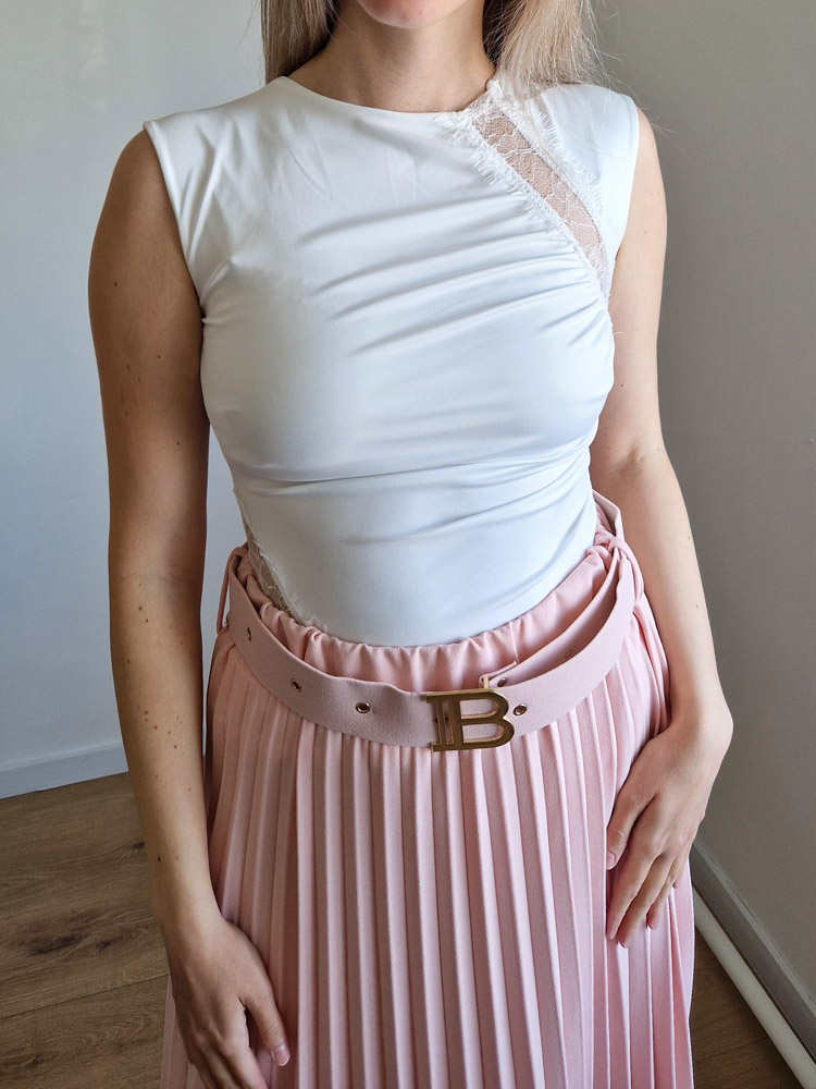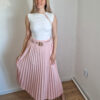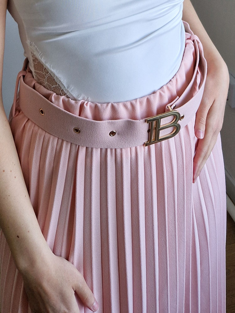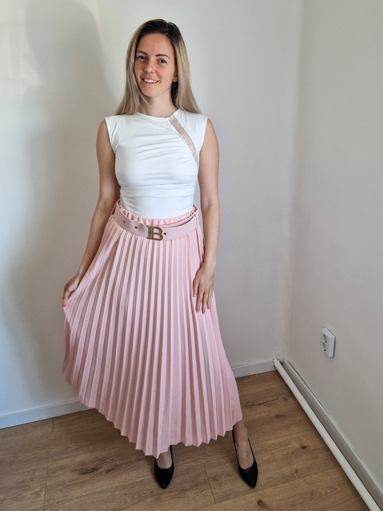 Púderrózsaszín pliszírozott midiszoknya övvel