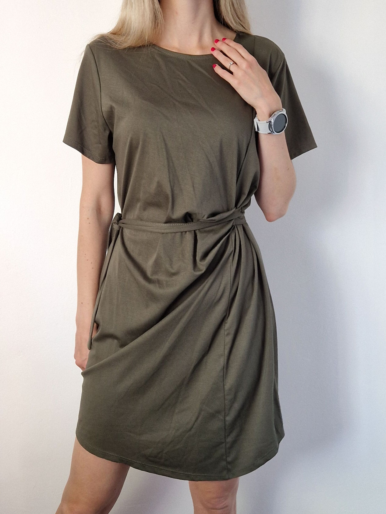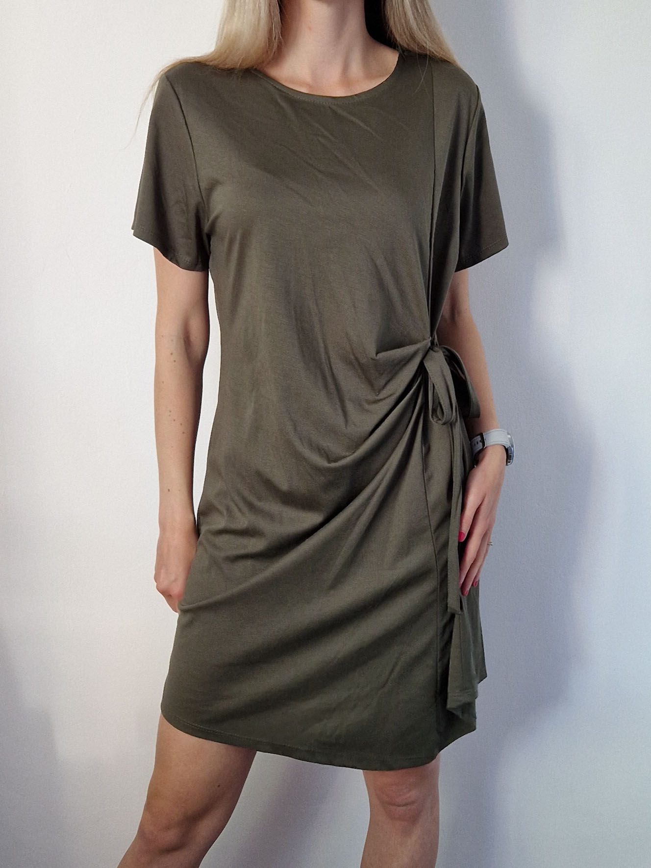 Khaki derekán megkötős ruha