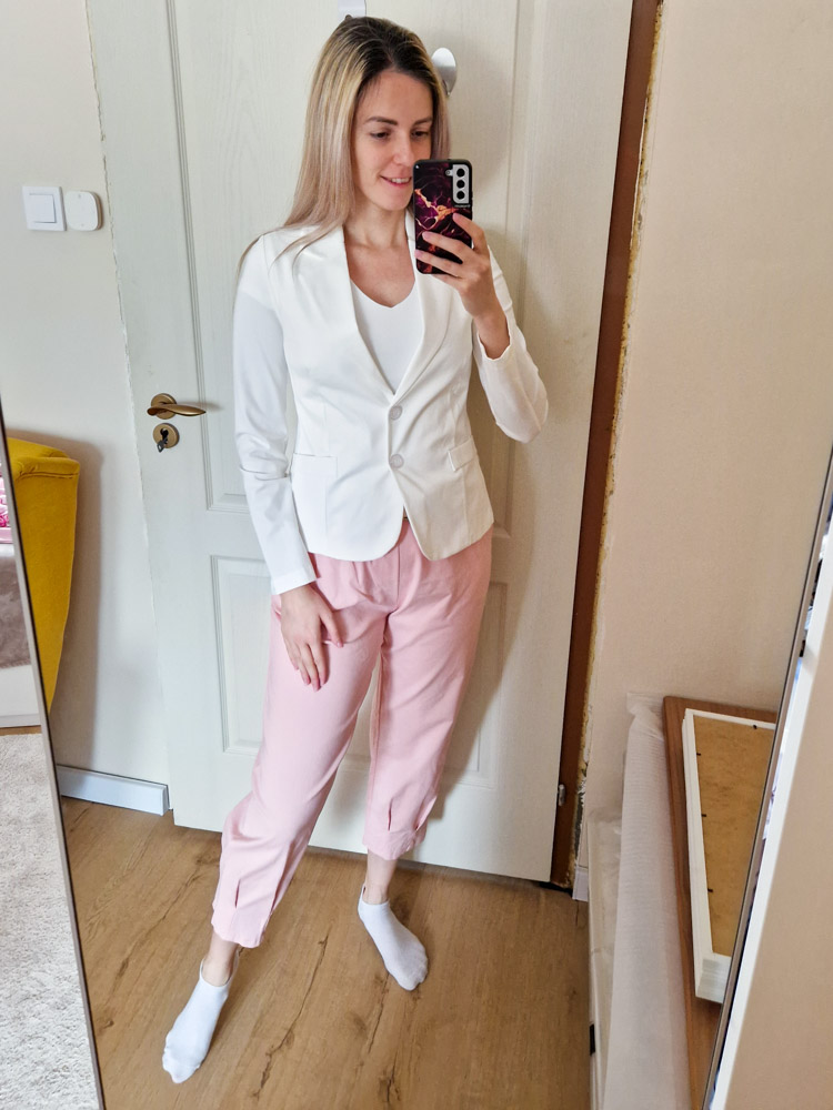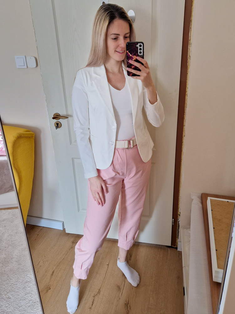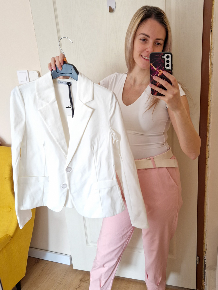Női normál hosszúságú karcsúsított elegáns fehér blézer