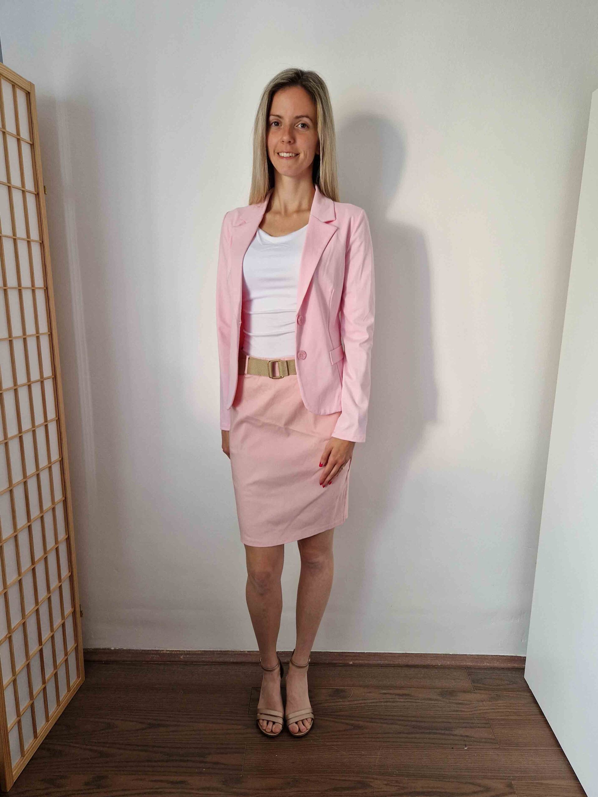 Női normál hosszúságú karcsúsított elegáns rózsaszín blézer