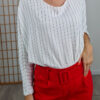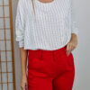 Nikolett kereknyakú fehér csíkos felső könnyed, lenge anyagból – XXL méretig