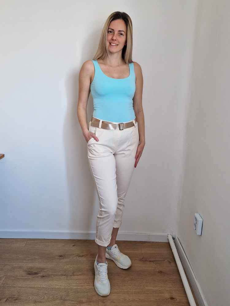 Ha szereted azokat a darabokat, amik nem csak kiszolgálnak, hanem egy kicsit vissza is adnak – energiát, lendületet, önbizalmat –, akkor a türkiz Nola felsővel nem tudsz mellényúlni.