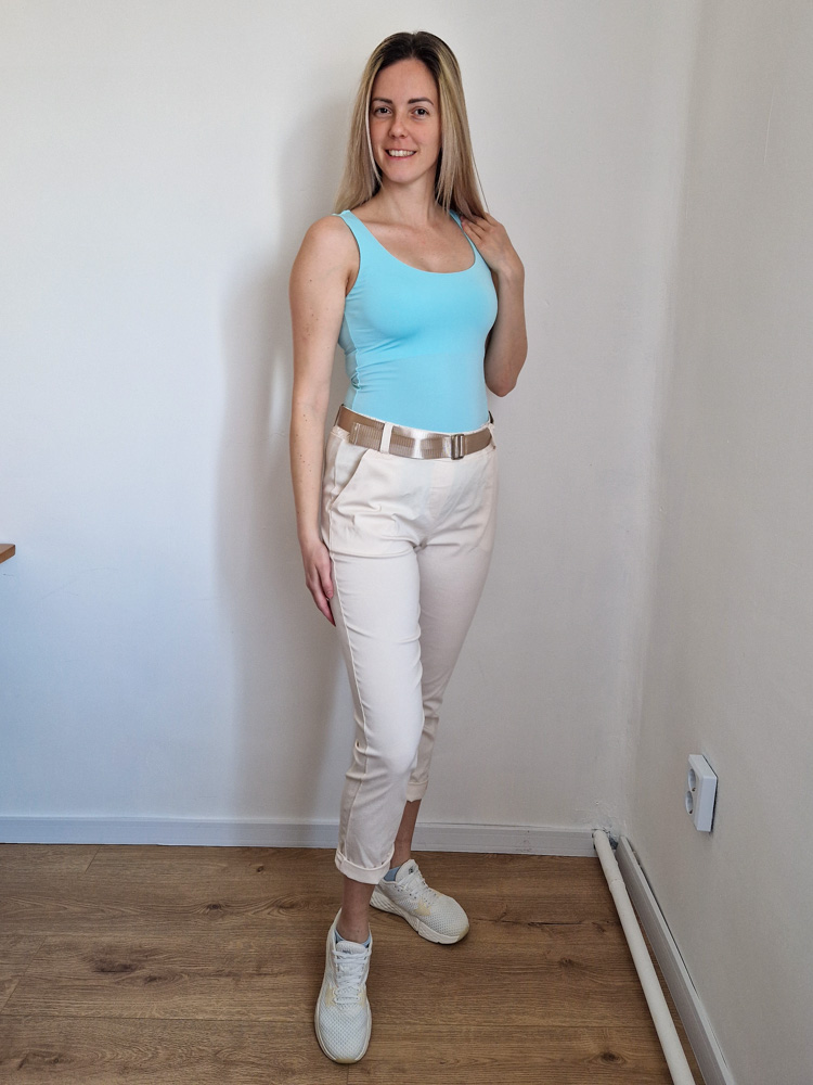 Az anyaga puha, rugalmas és hűs tapintású – különösen jól esik a bőrödnek a melegebb napokon is. Nem tapad kellemetlenül, nem feszül, hanem együtt mozog veled.