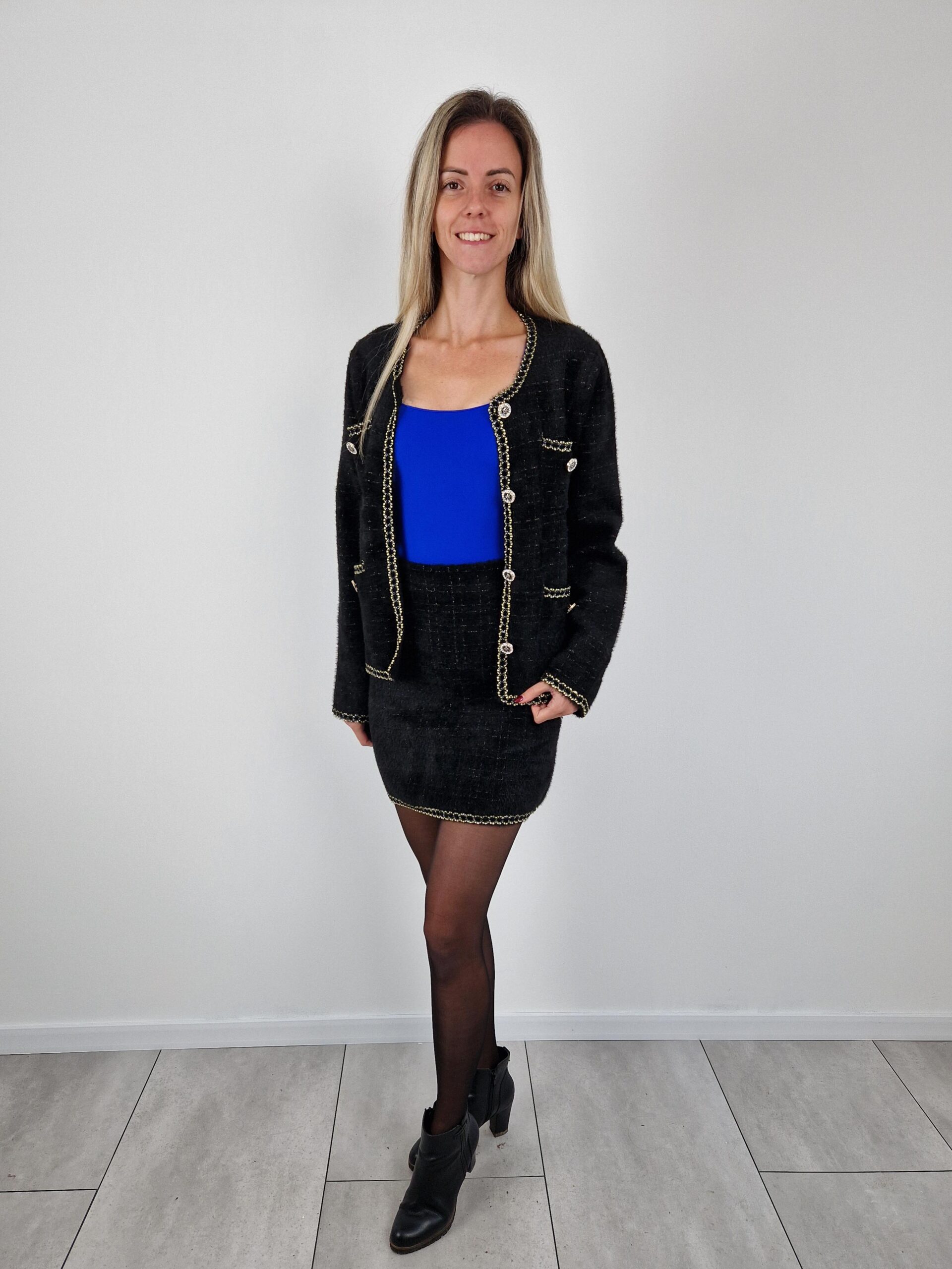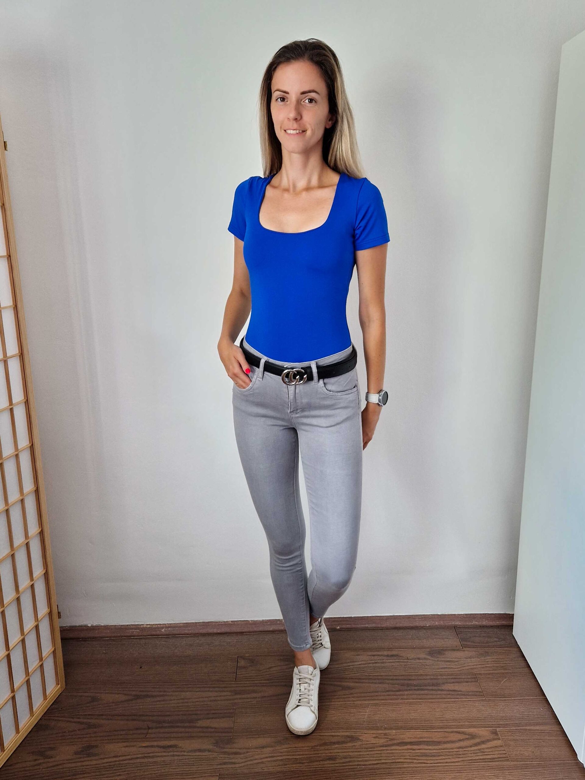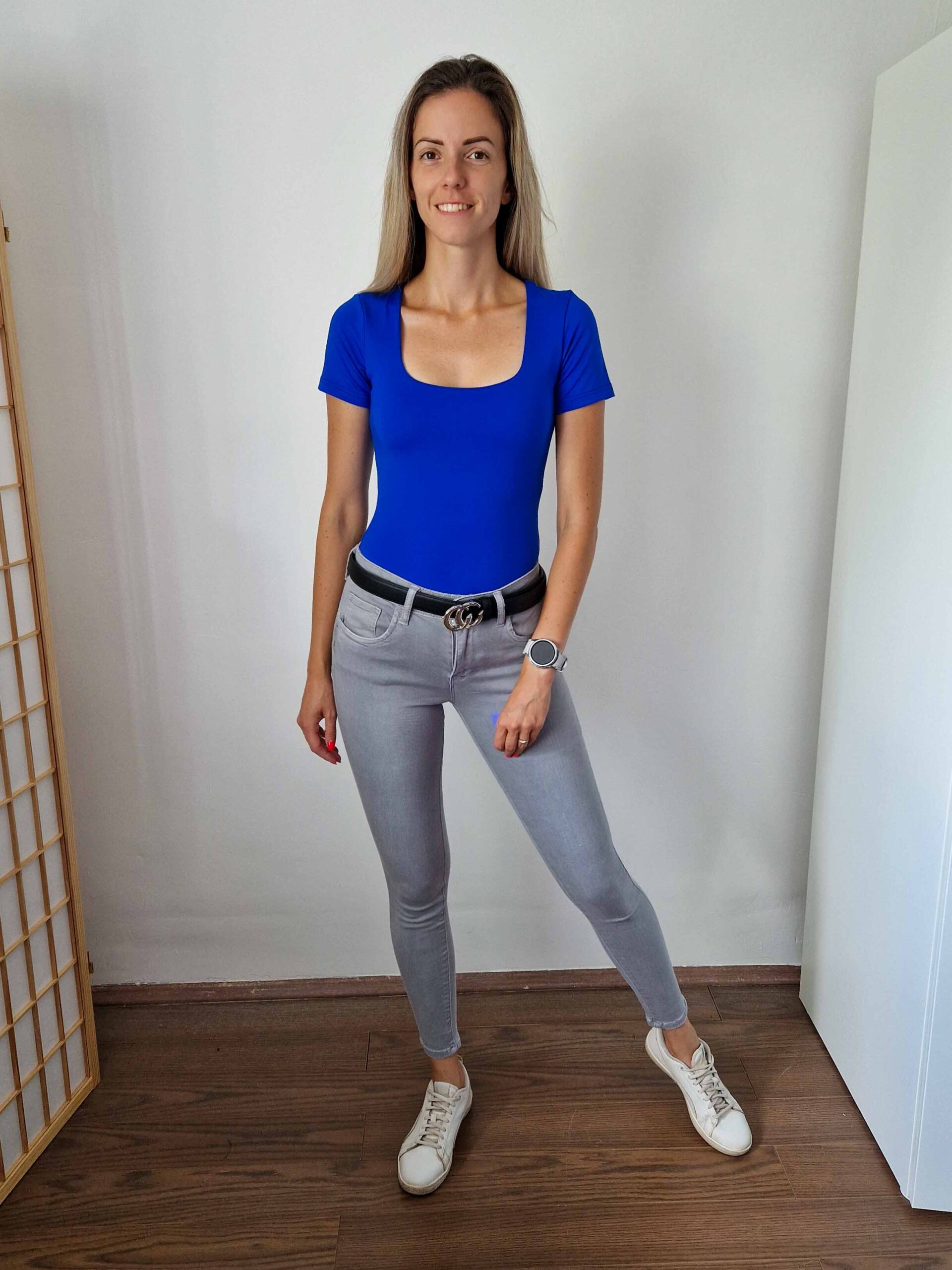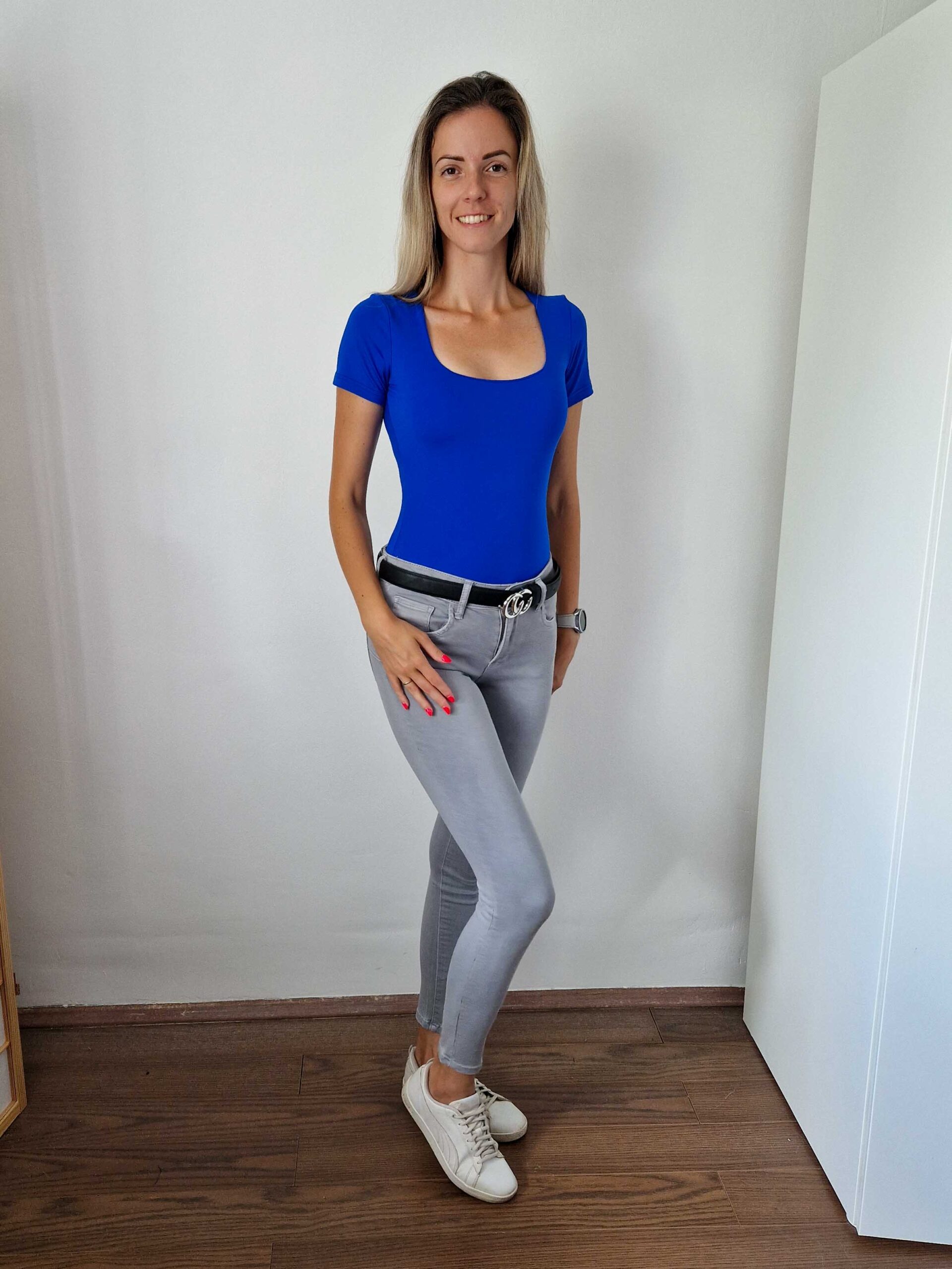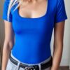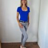 Királykék push-up hatású kerek nyakú dekoltált rövidujjú body