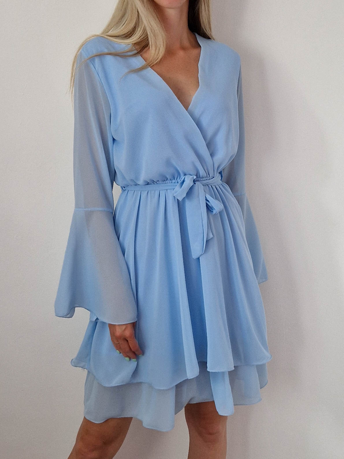 Sogno világoskék harangujjú loknis alkalmi ruha